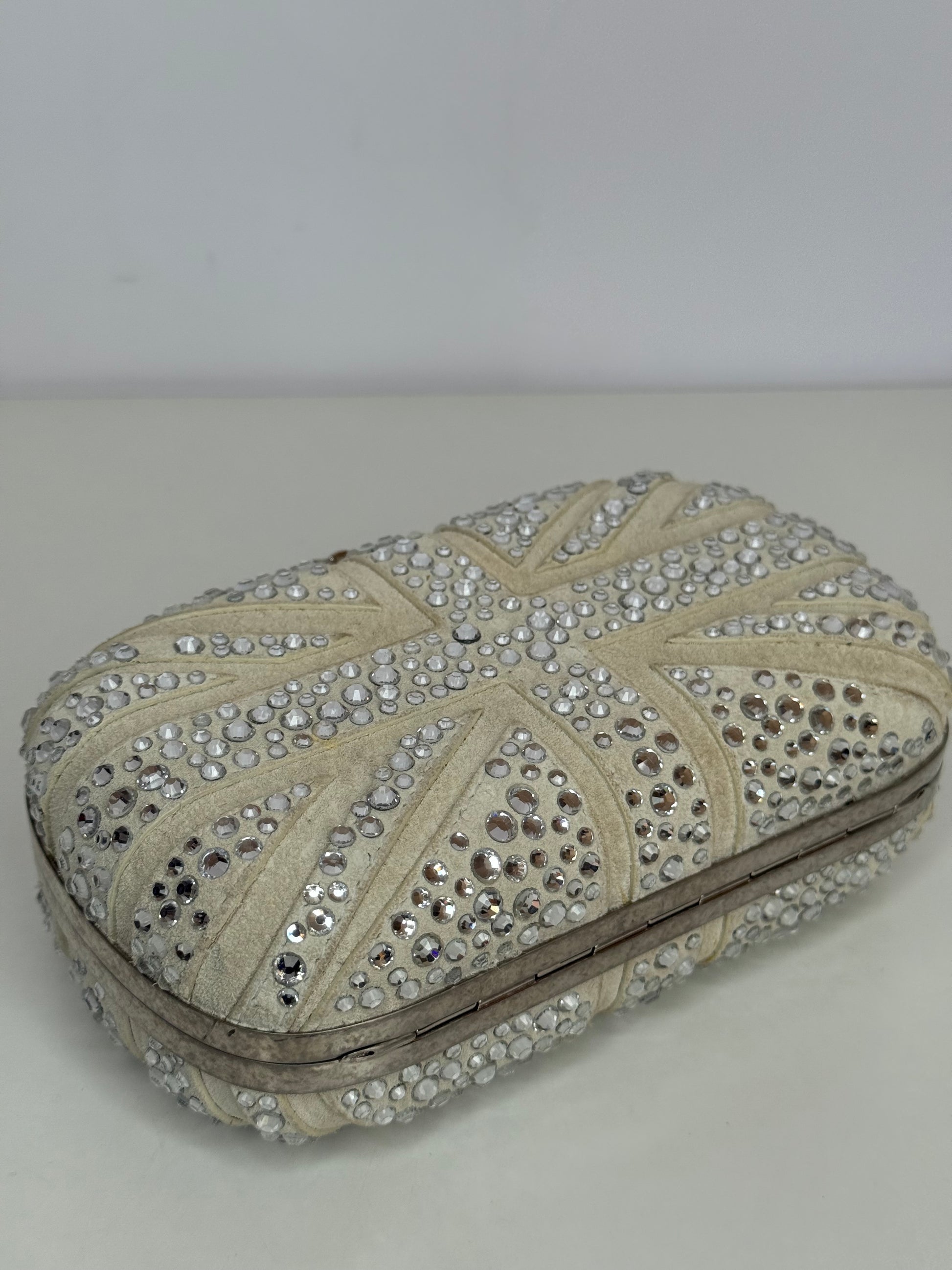 Alexander McQueen Off White Suede Studded Britannia Skull Box Clutch