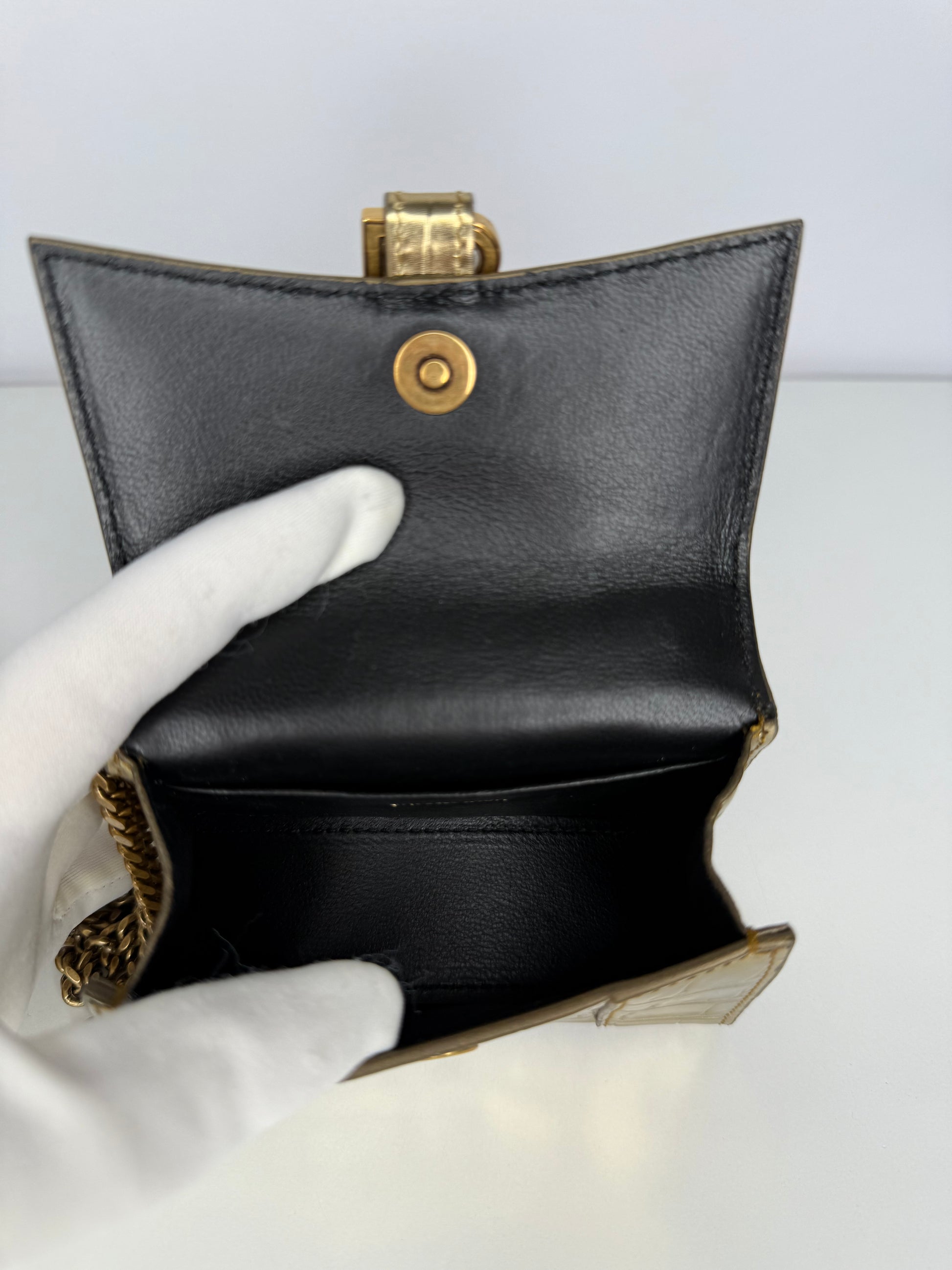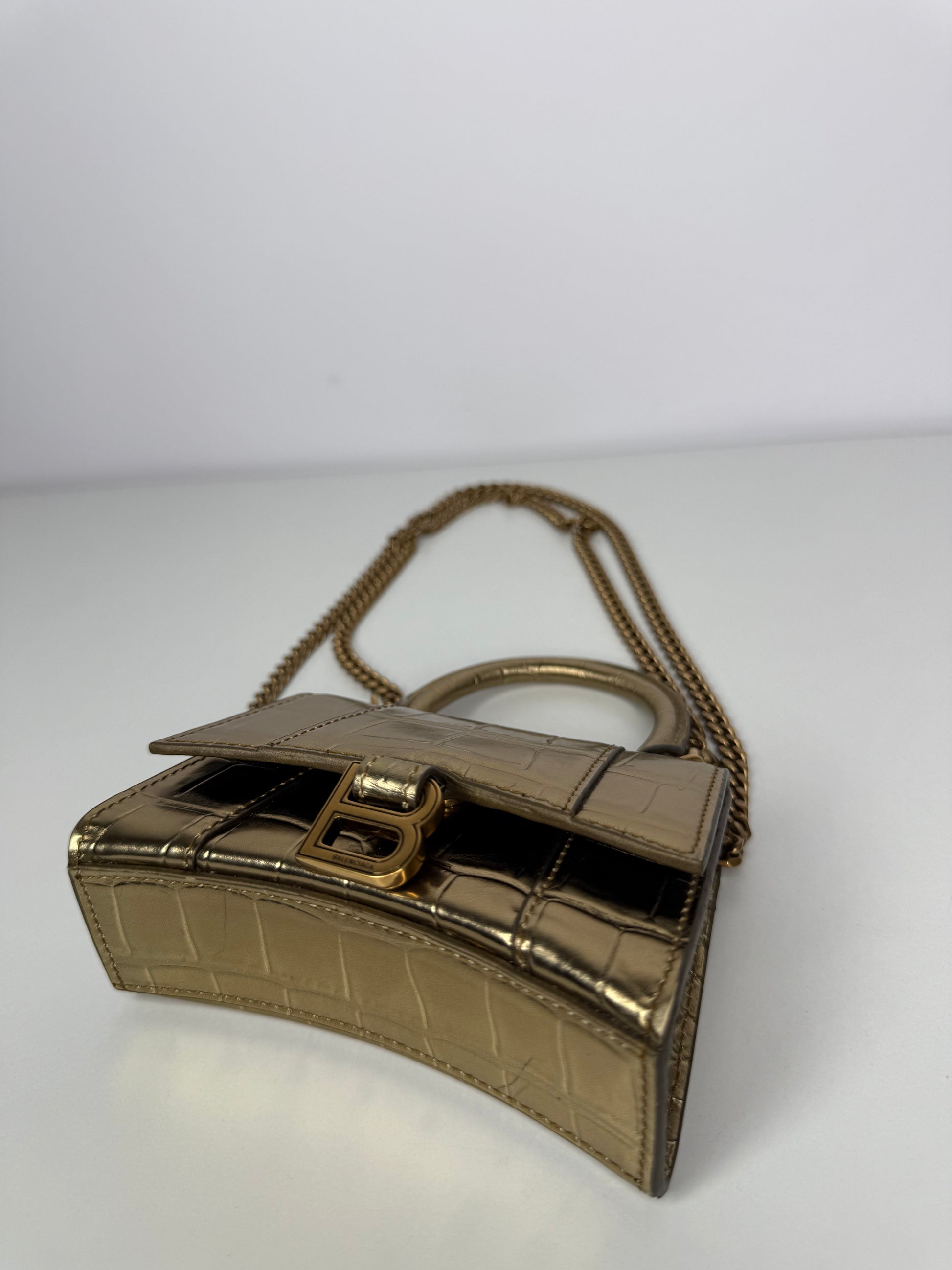 Balenciaga Gold Croc Embossed Hourglass Nano Top Handle Bag
