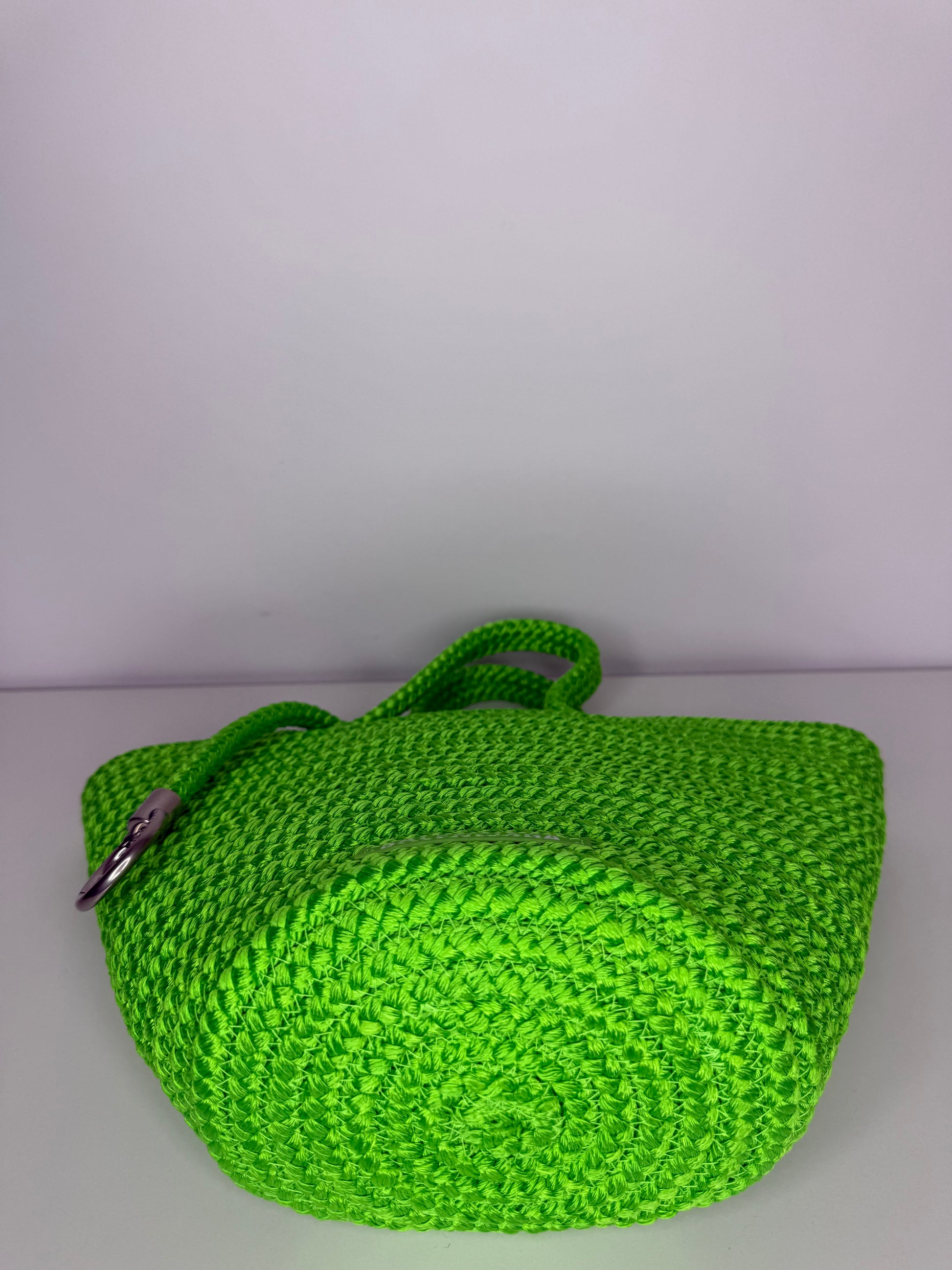 The Balenciaga Small Ibiza Woven Basket Bag is crafted from green woven nylon, featuring a compact, casual design with a relaxed yet stylish vibe. Perfect for effortless, chic everyday wear.