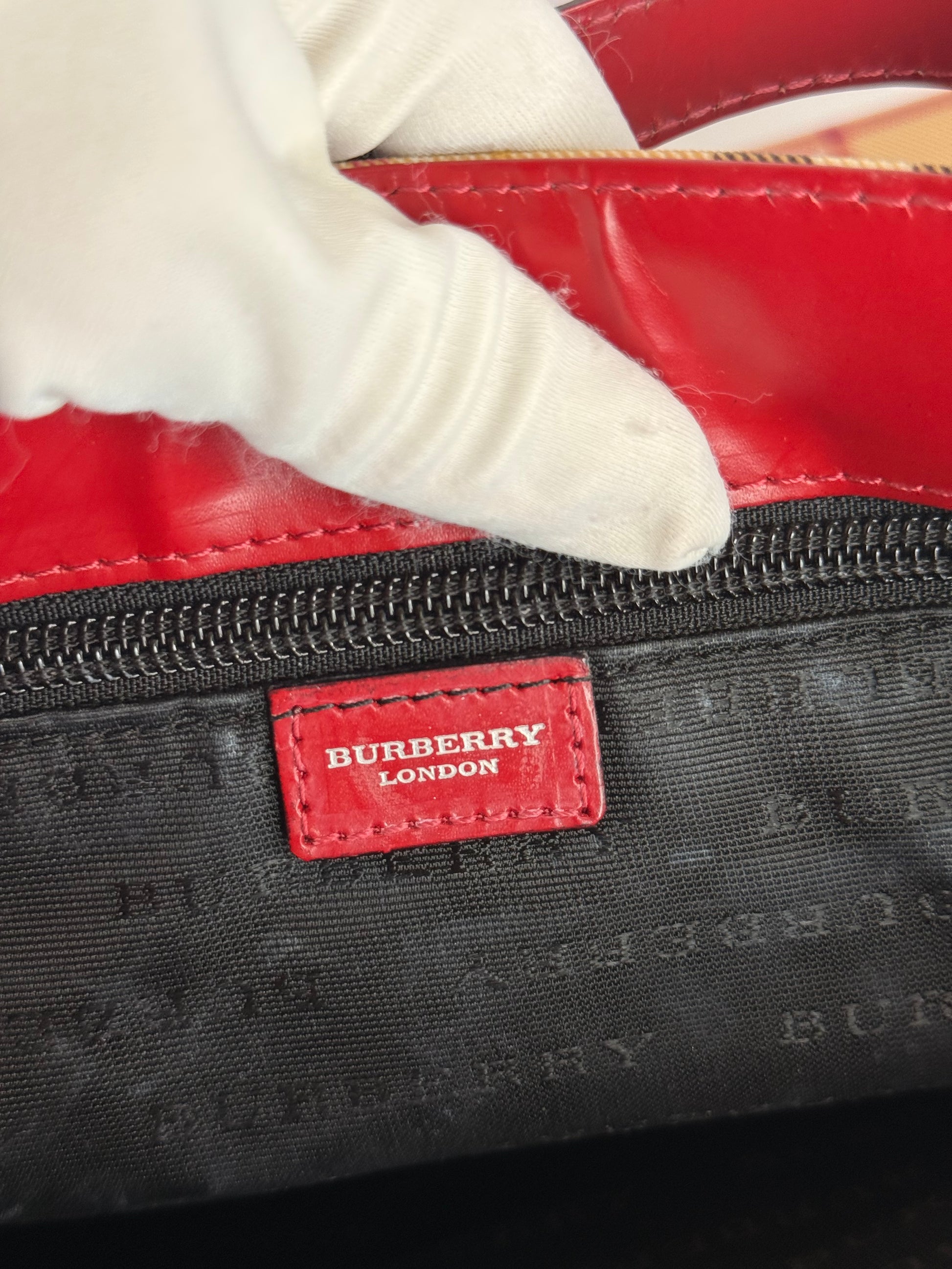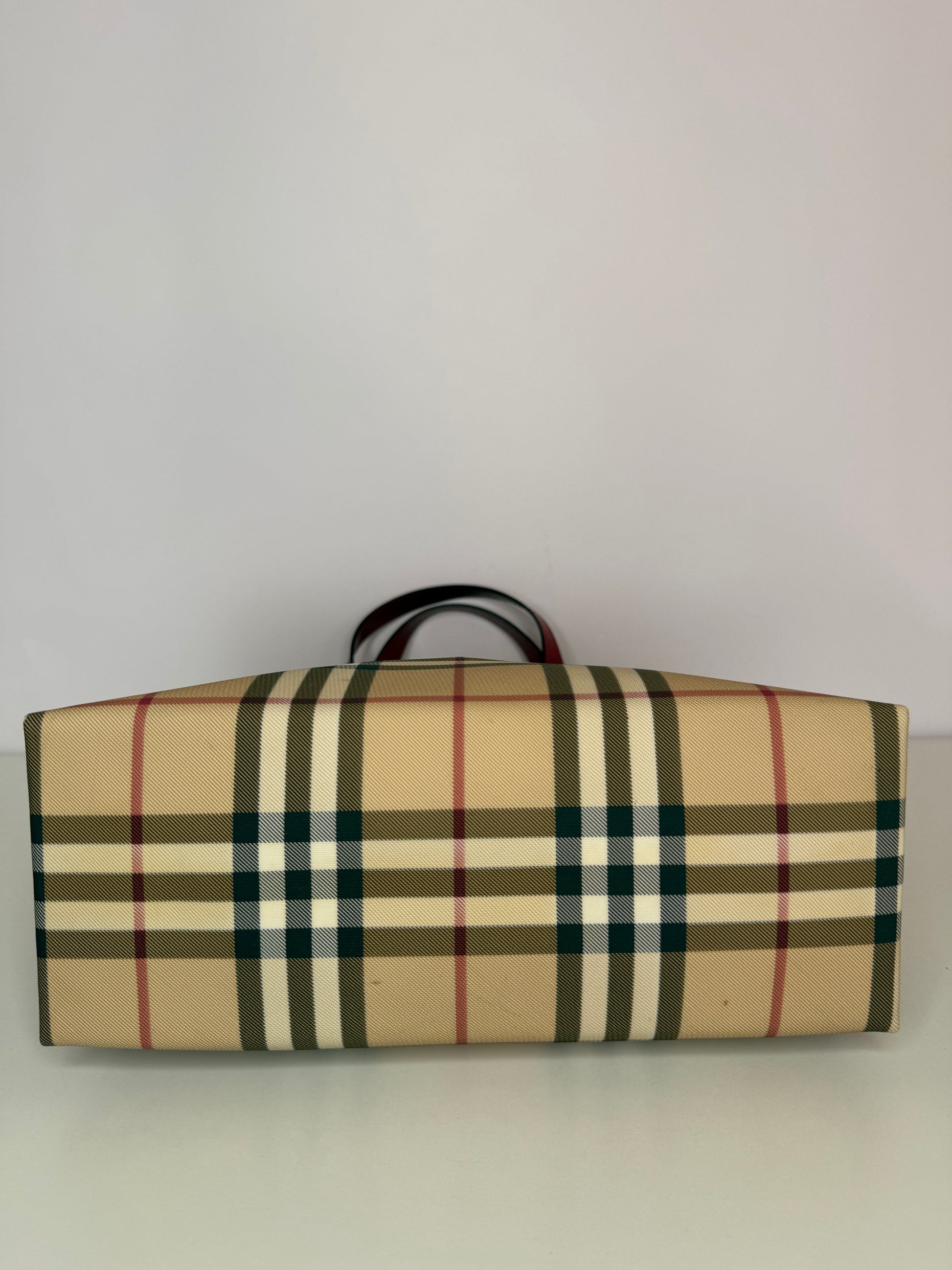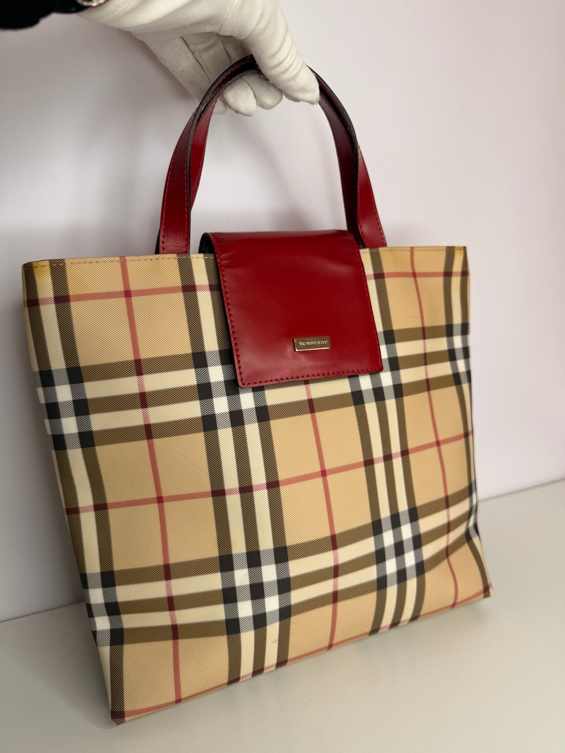 Burberry Beige/Red Nova Check Coated Canvas Top Handle Bag