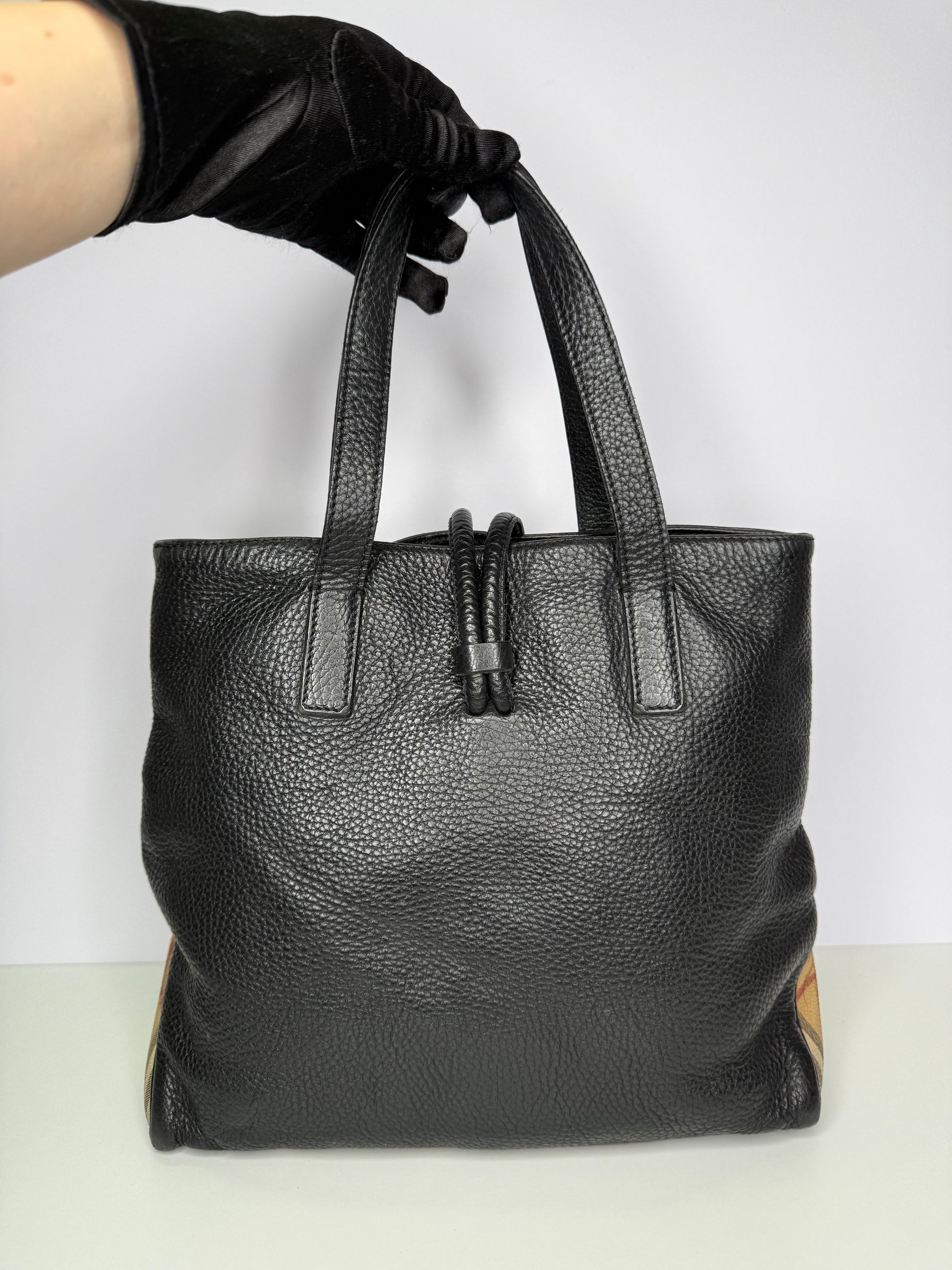 Burberry Black Leather Small Horn Toggle Tote Bag