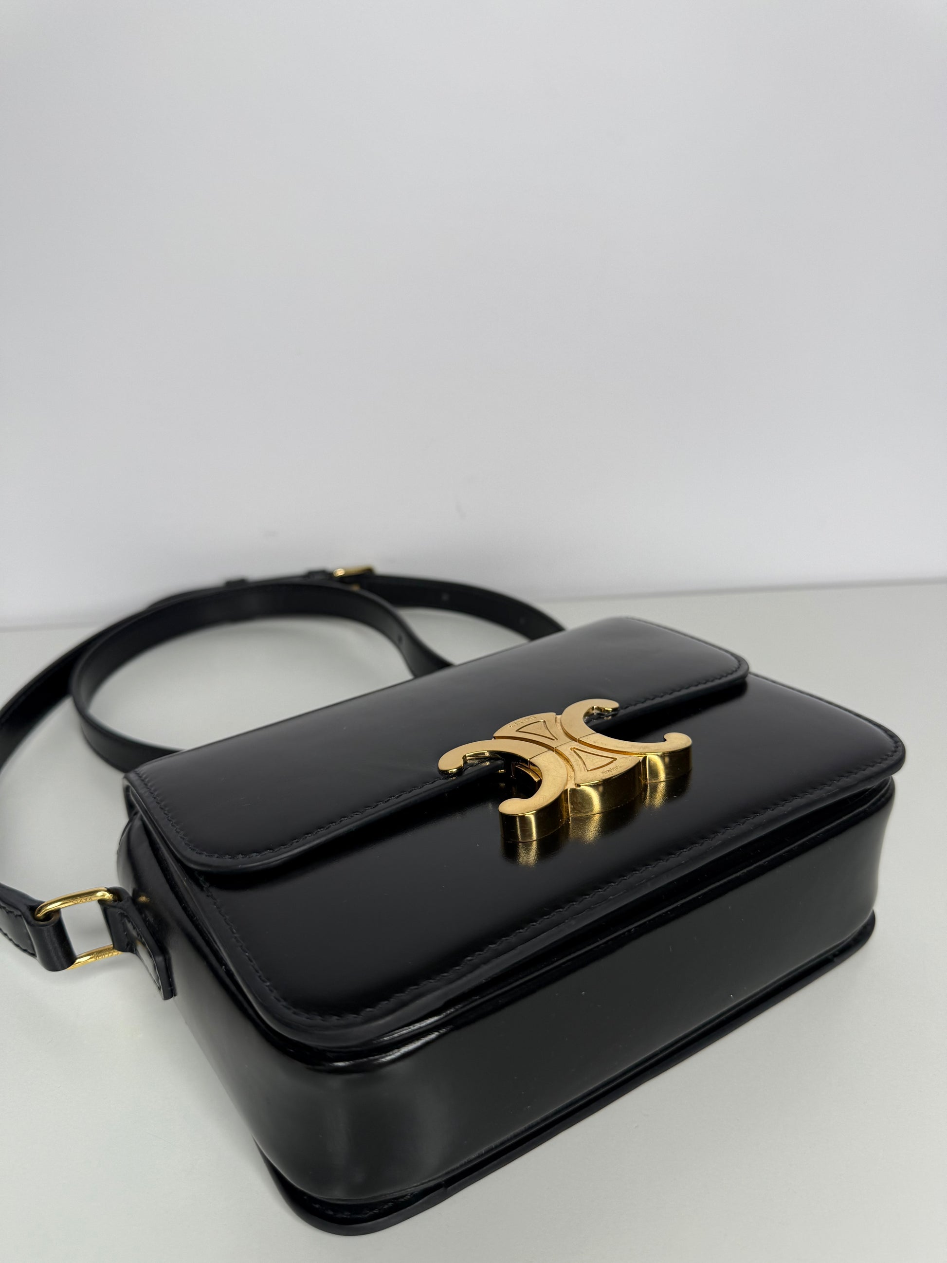 Celine Teen Triomphe Bag in Black Shiny Calfskin