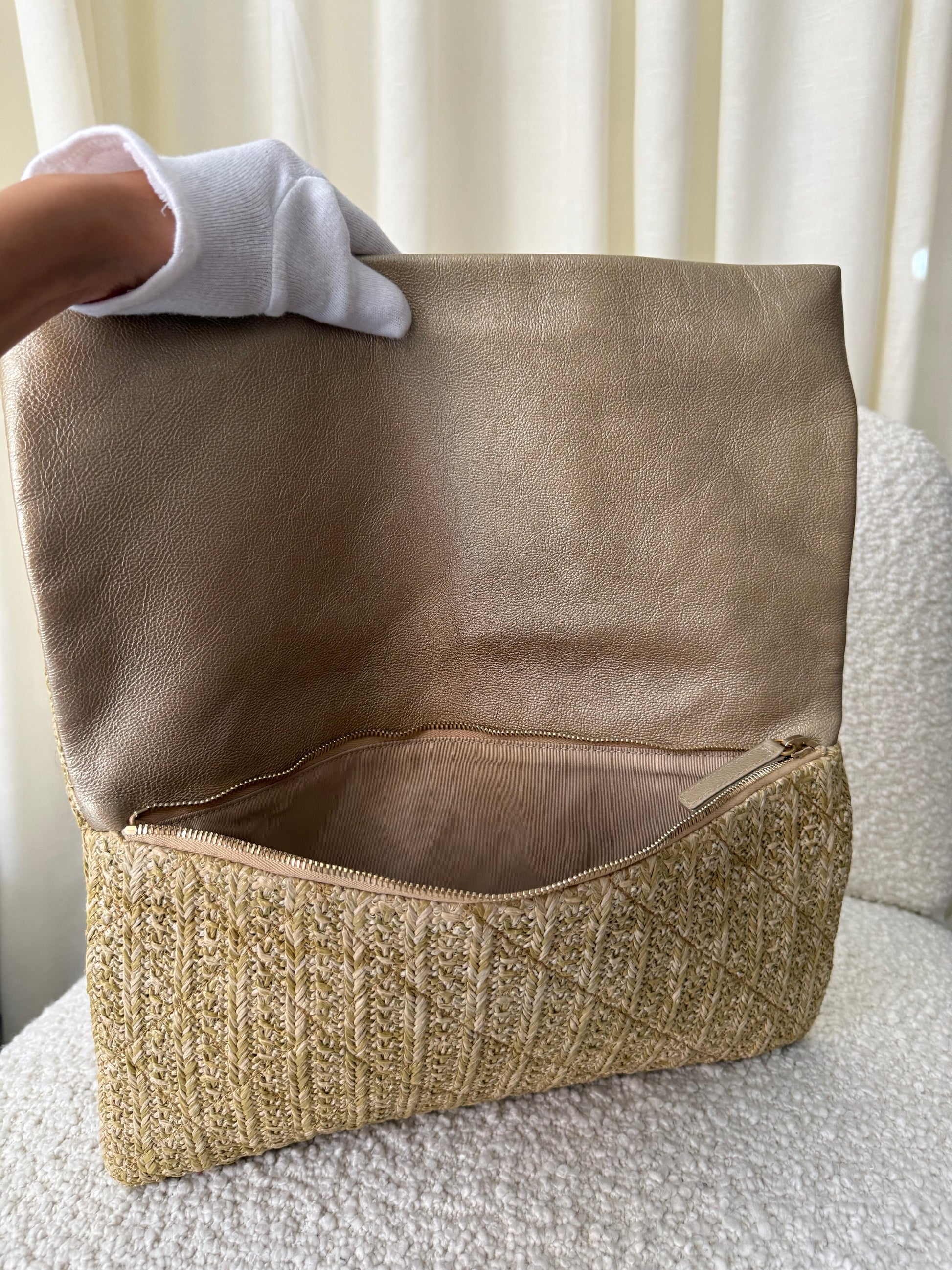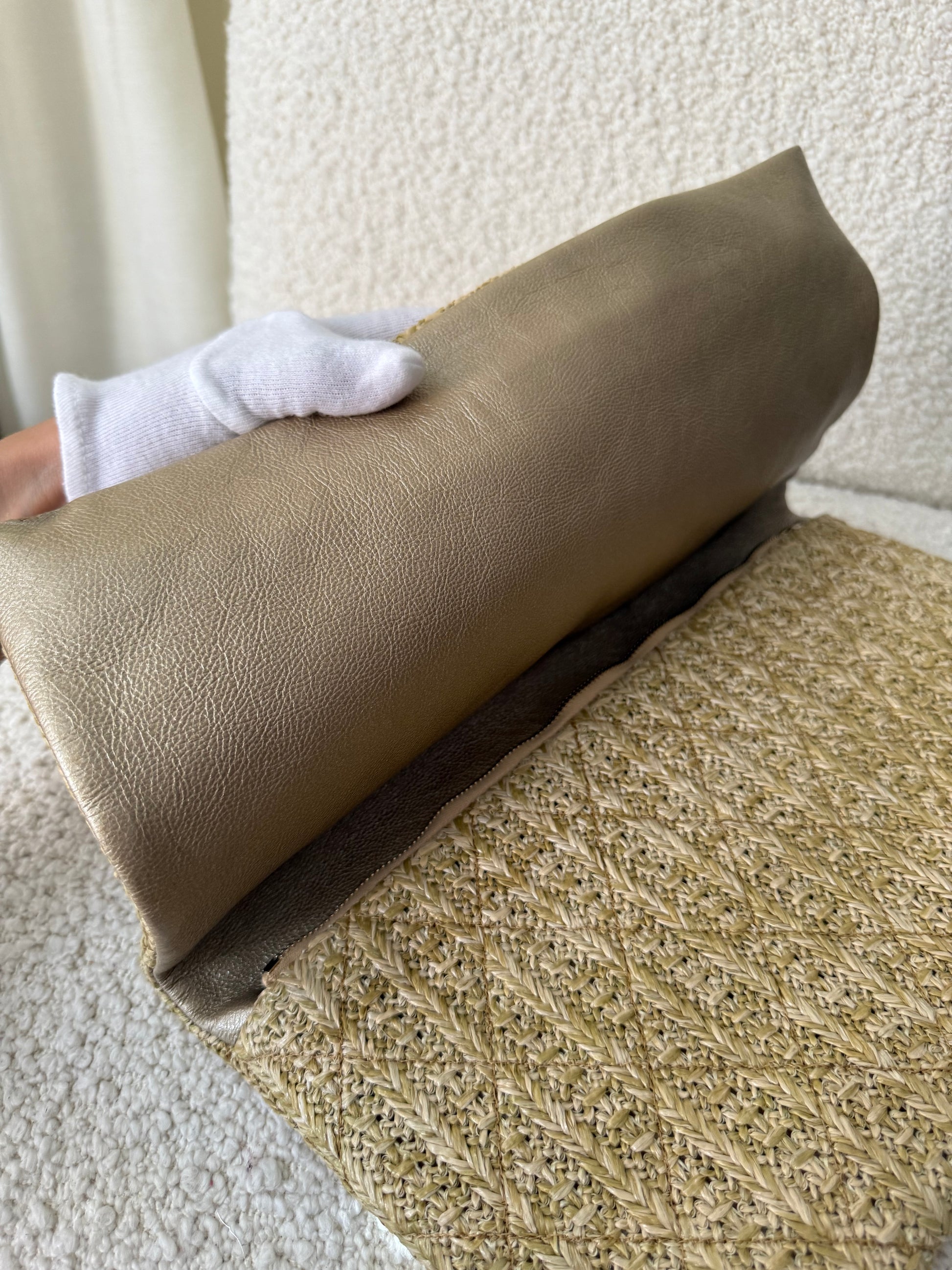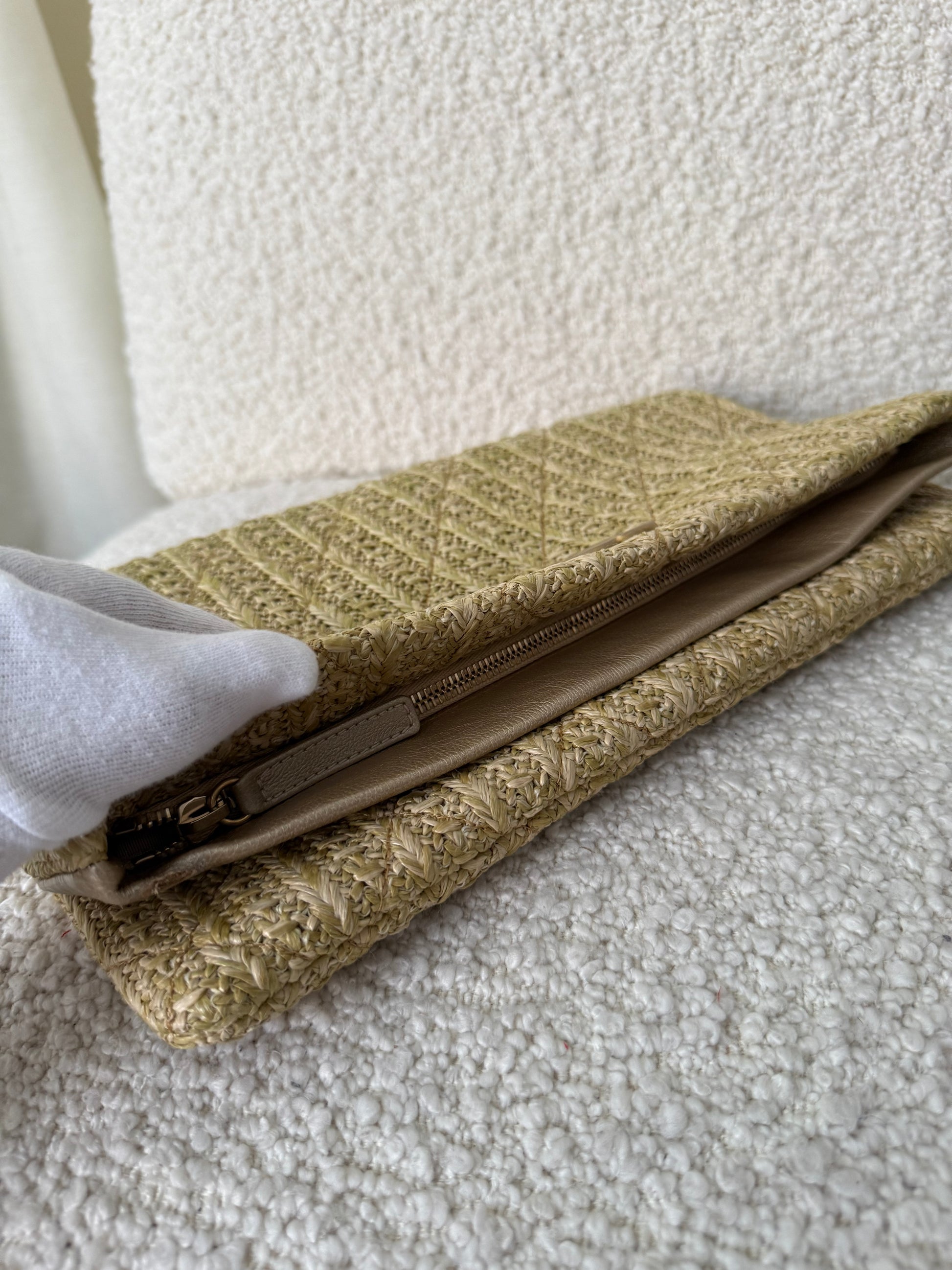 Chanel CC Woven Clutch Gold Natural Raffia Antique Gold Hardware