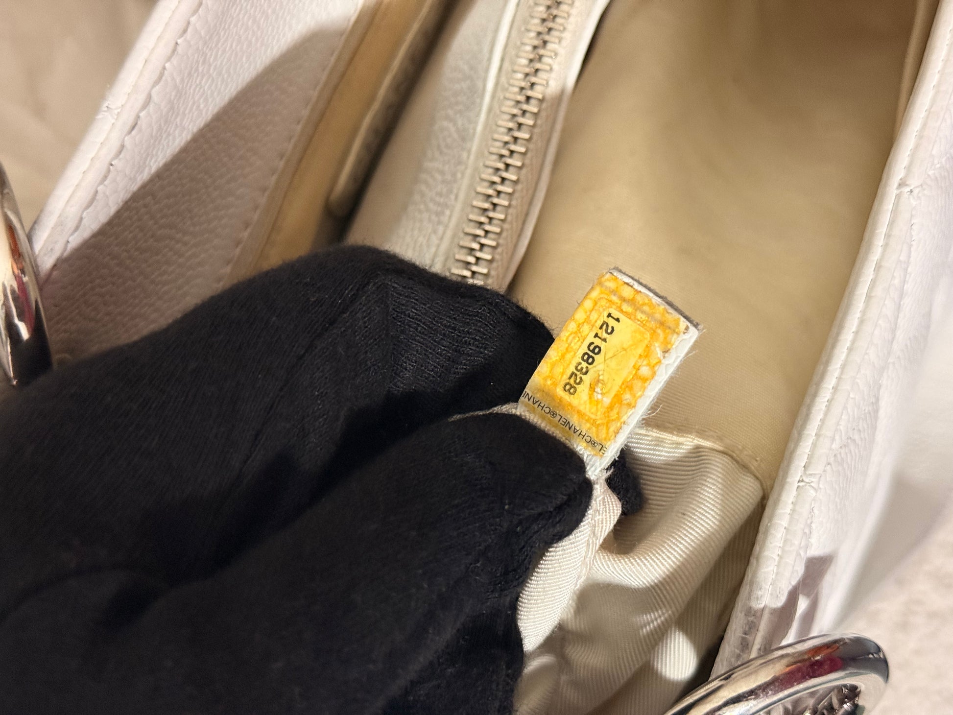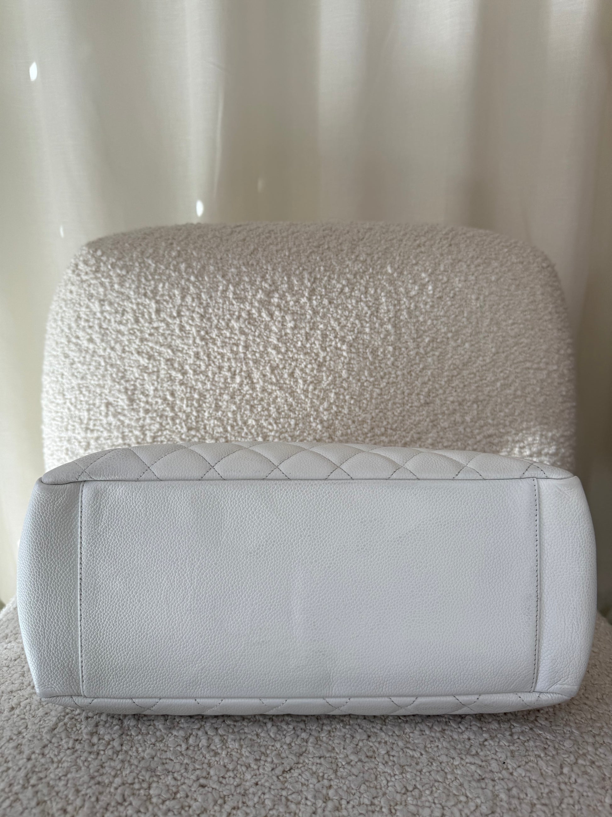 Chanel White Quilted Caviar Leather Grand Shopping Tote