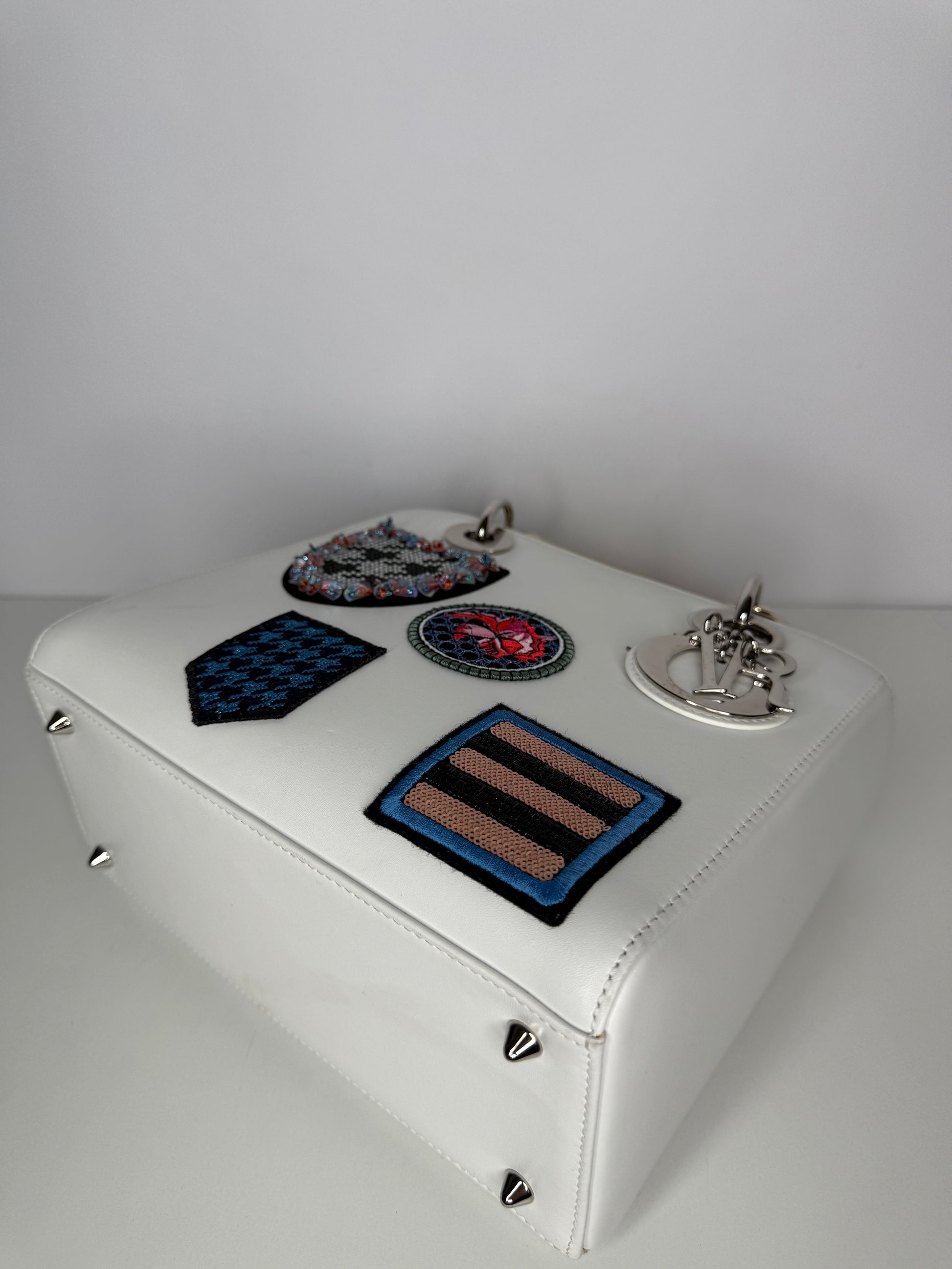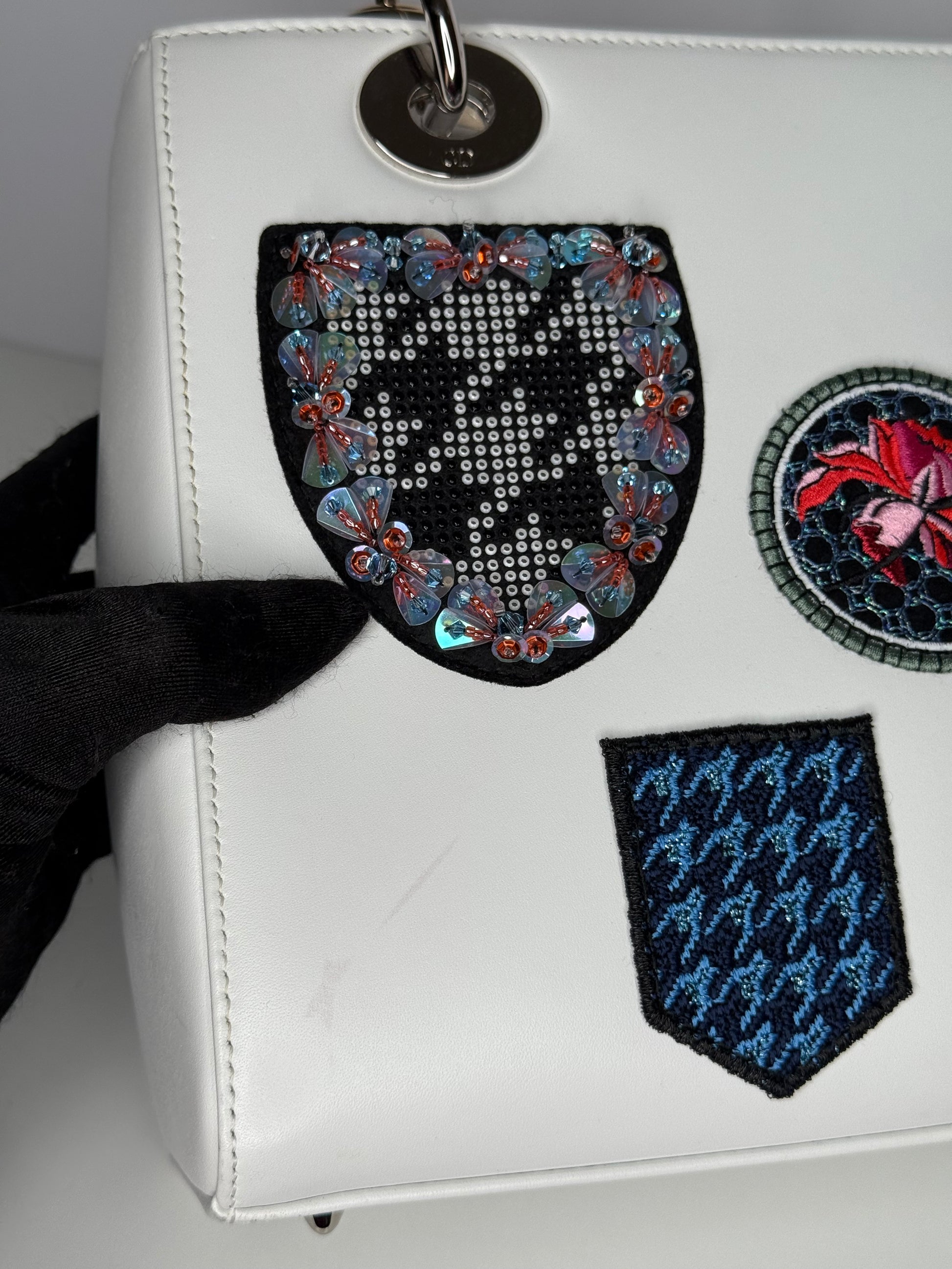 Christian Dior Limited Edition Medium Lady Dior White Patch Embellished