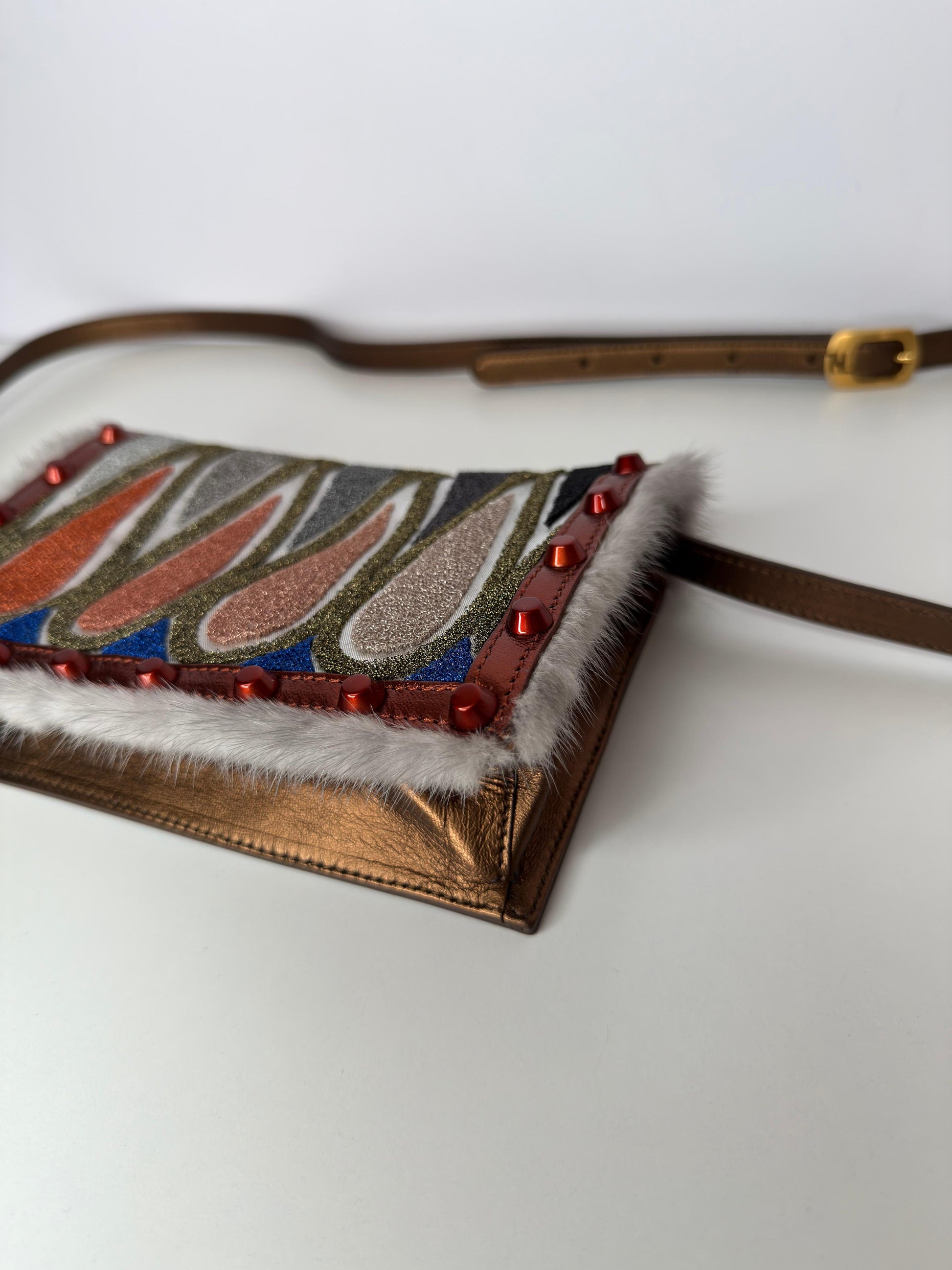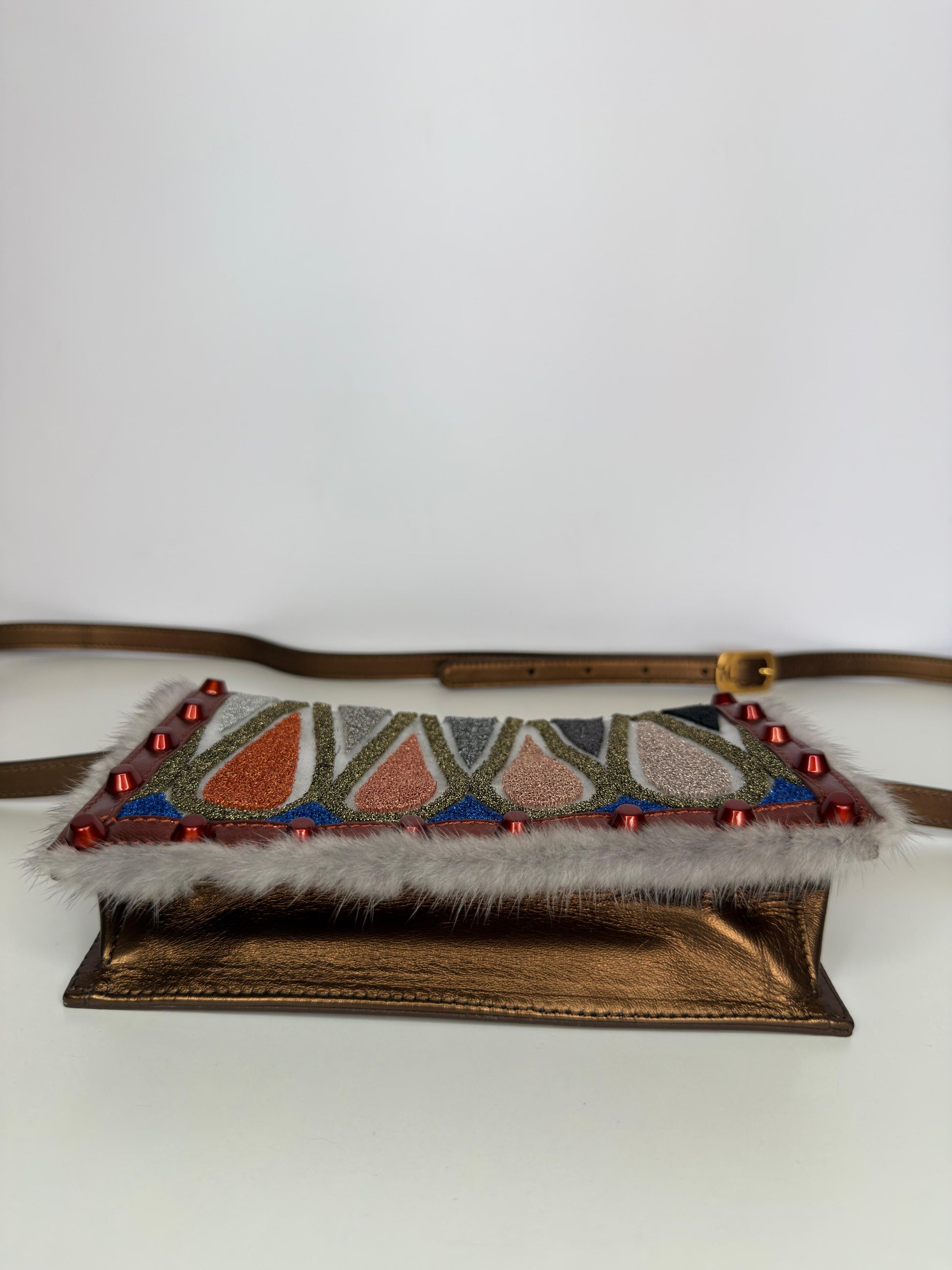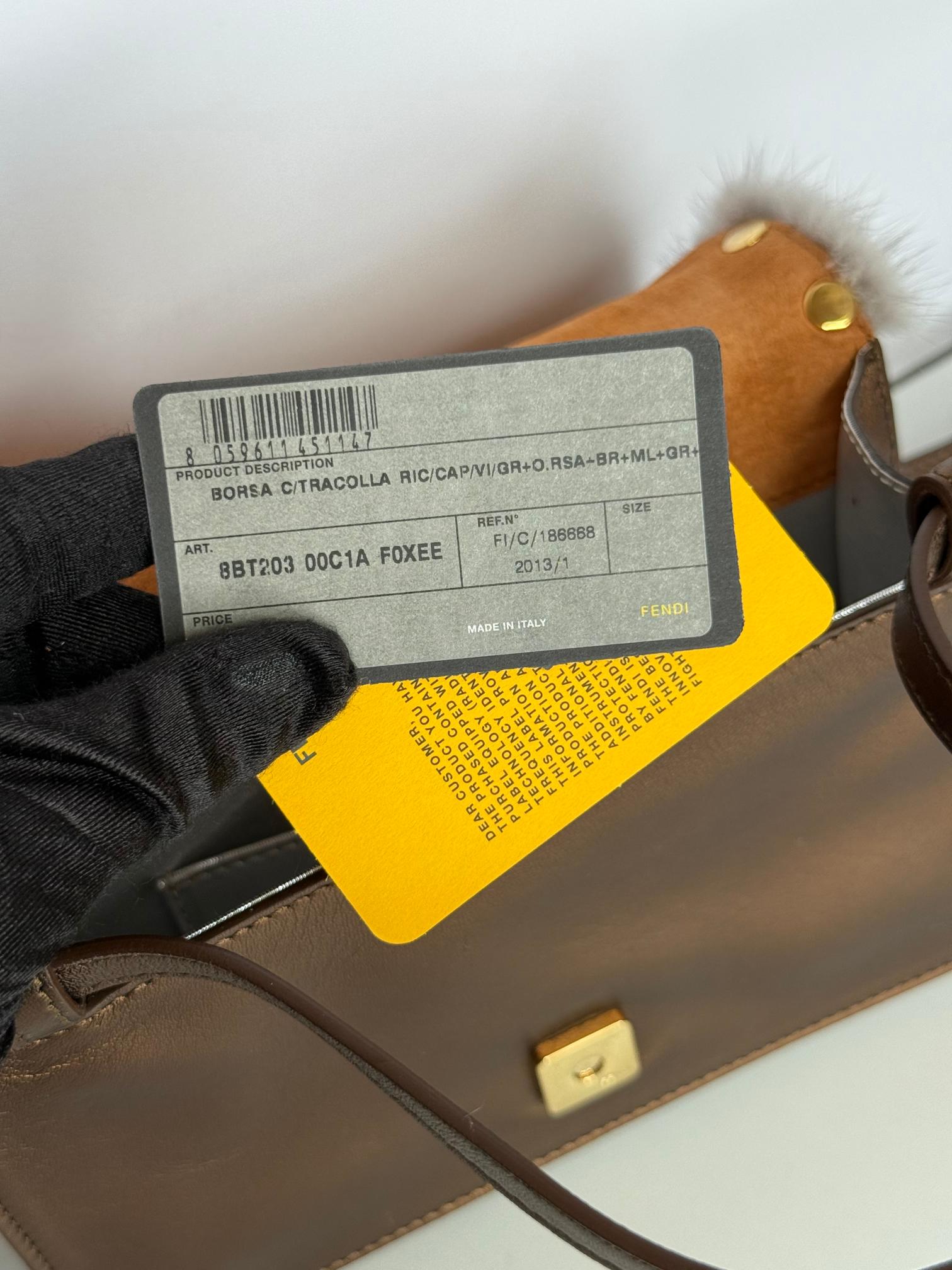 Fendi Mink-Trimmed Dark Metallic Gold Crossbody Bag