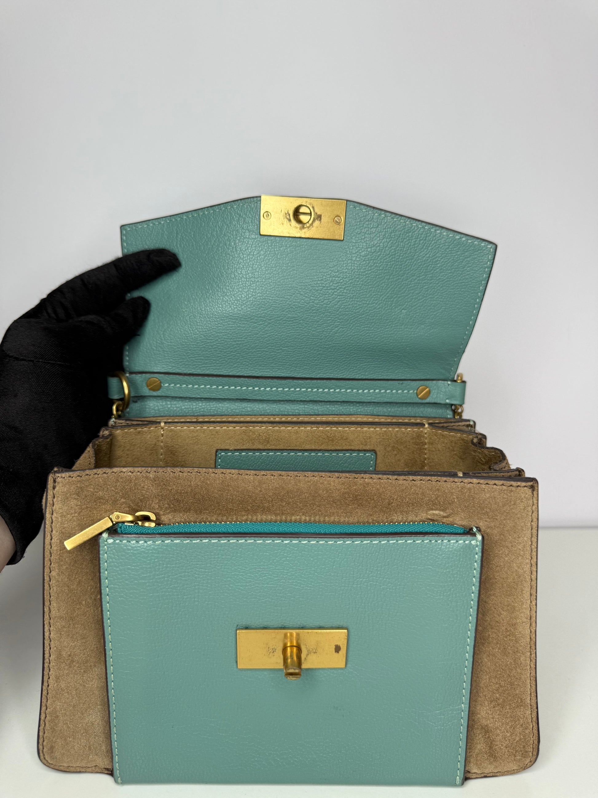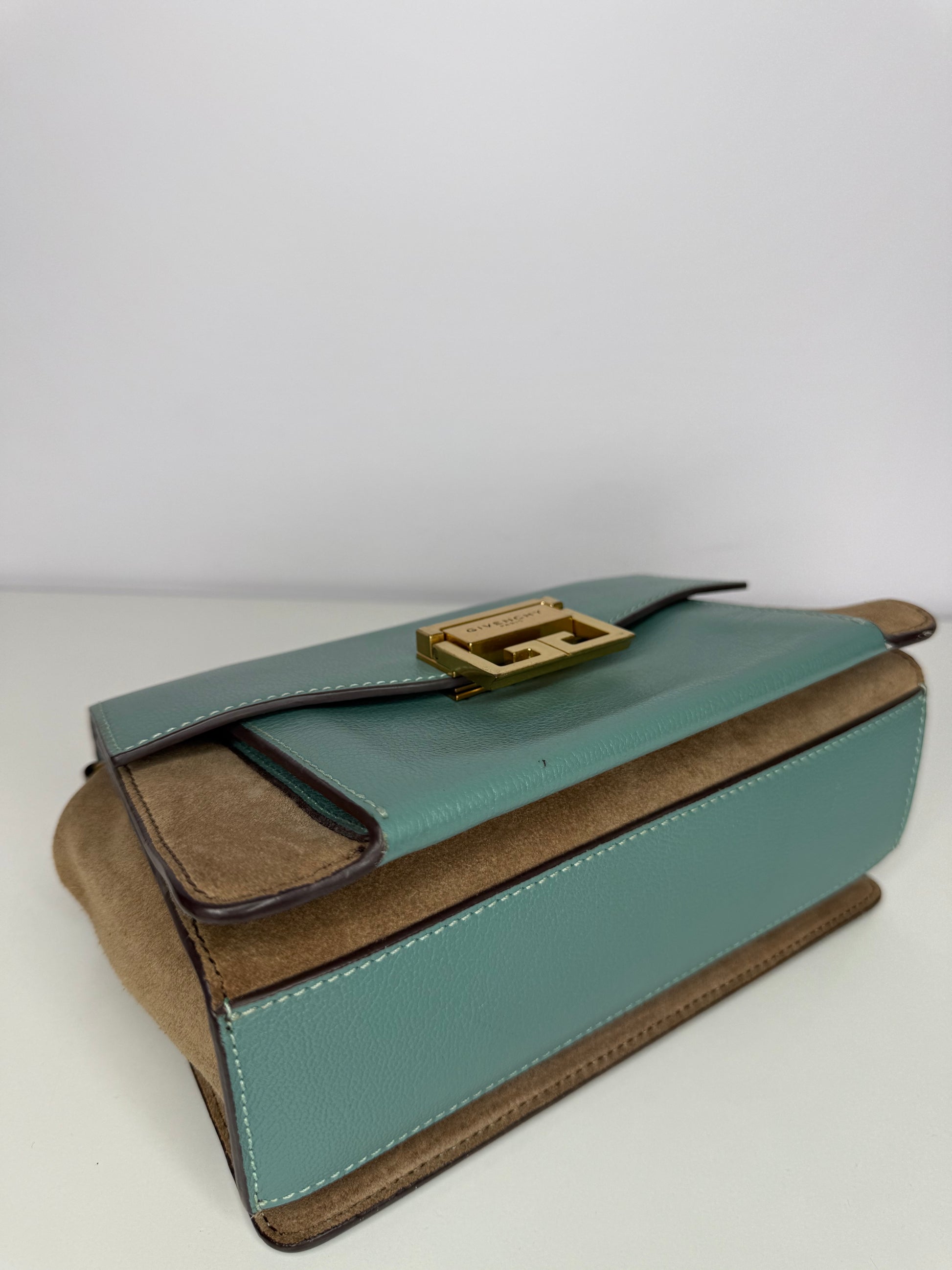 Givenchy GV3 in Light Blue Sugar Goatskin Tan Suede Trim Small Crossbody Bag