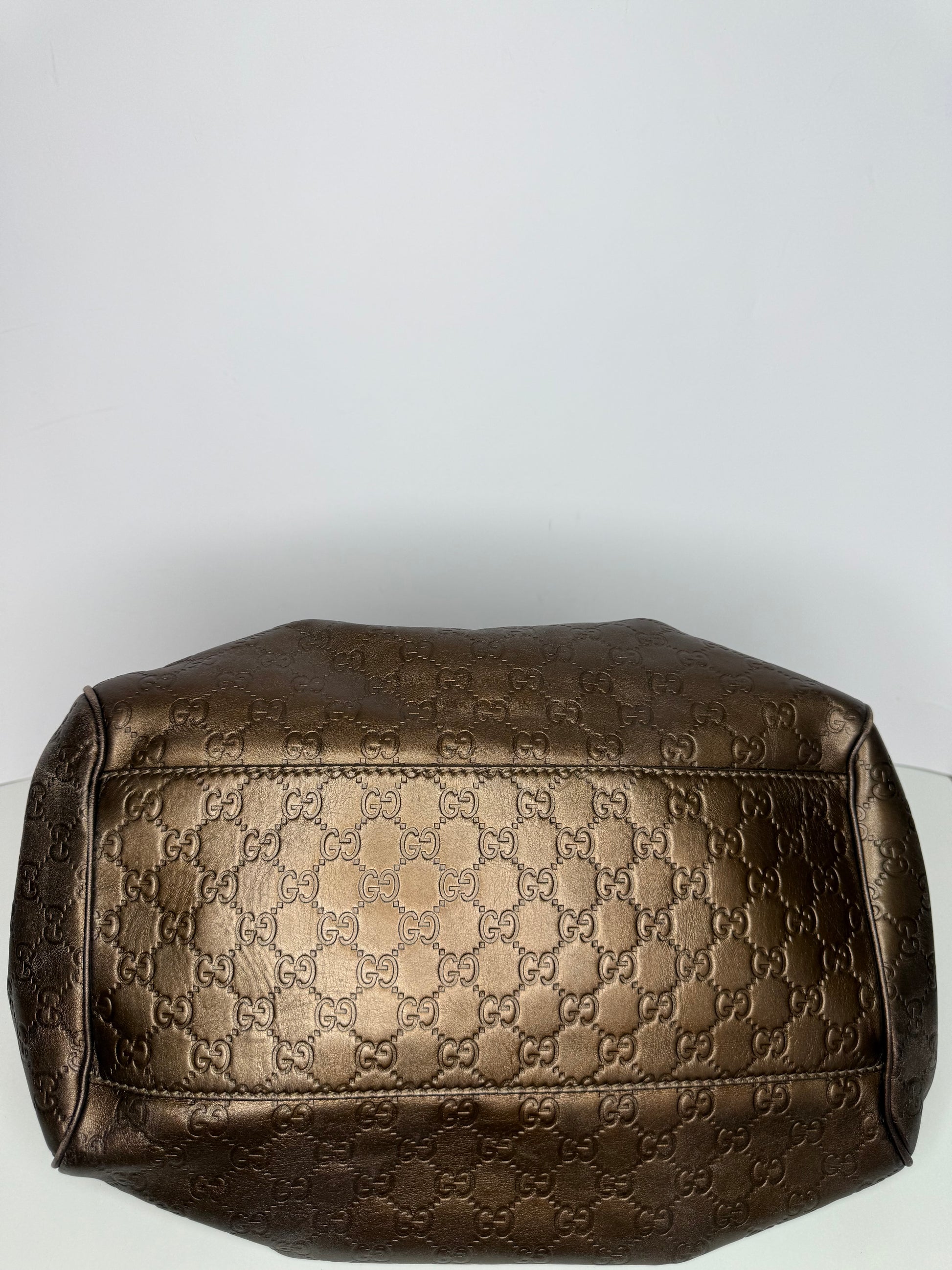 Gucci Brown/Bronze Embossed Guccissima Leather Sukey Medium Boston Bag