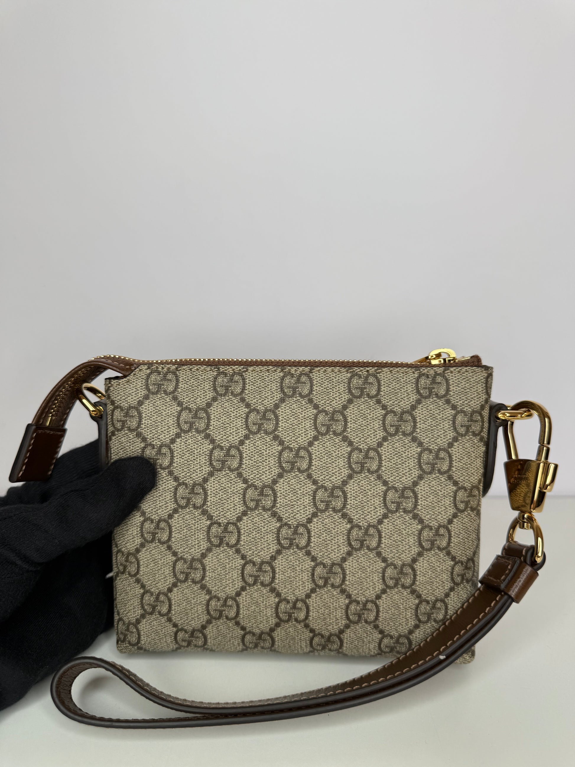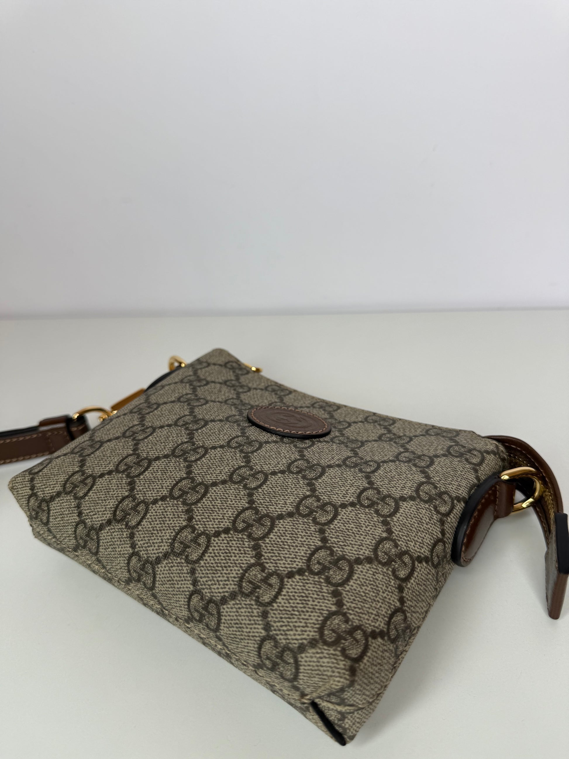 Gucci GG Coated Canvas Interlocking G Patch Wristlet Mini Messenger Bag