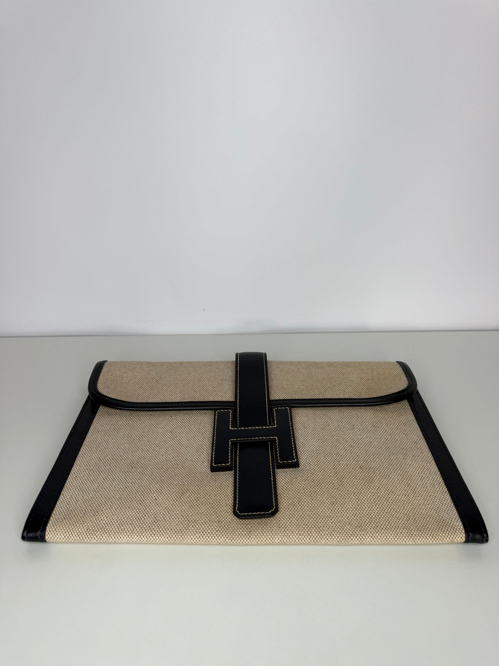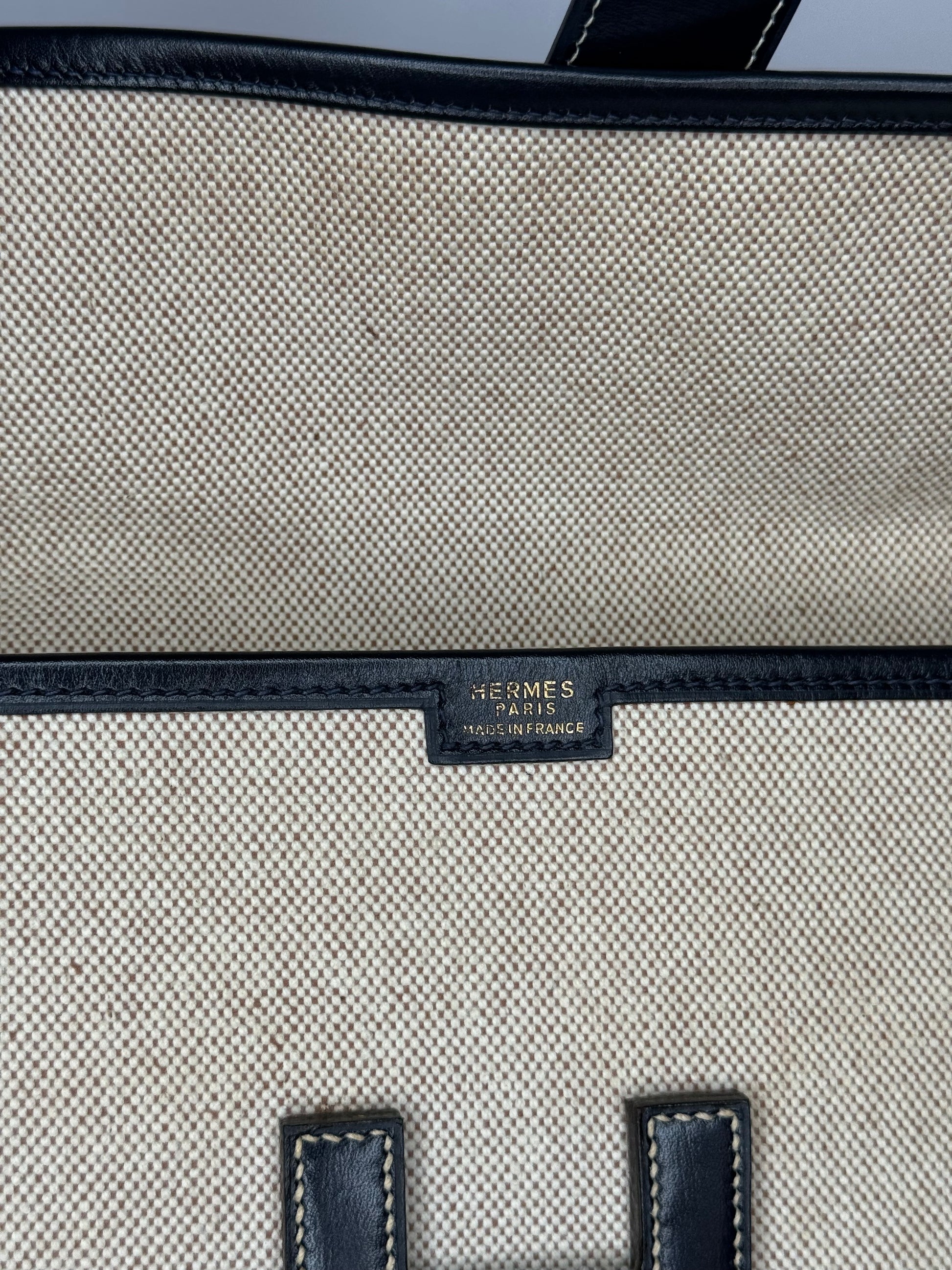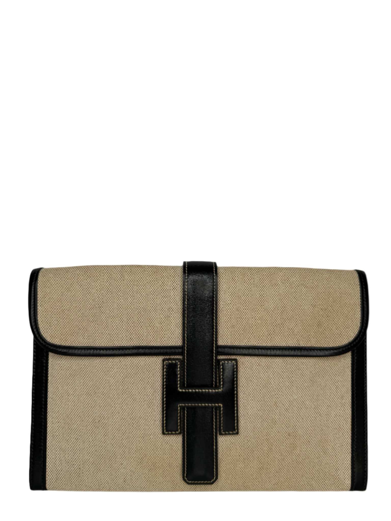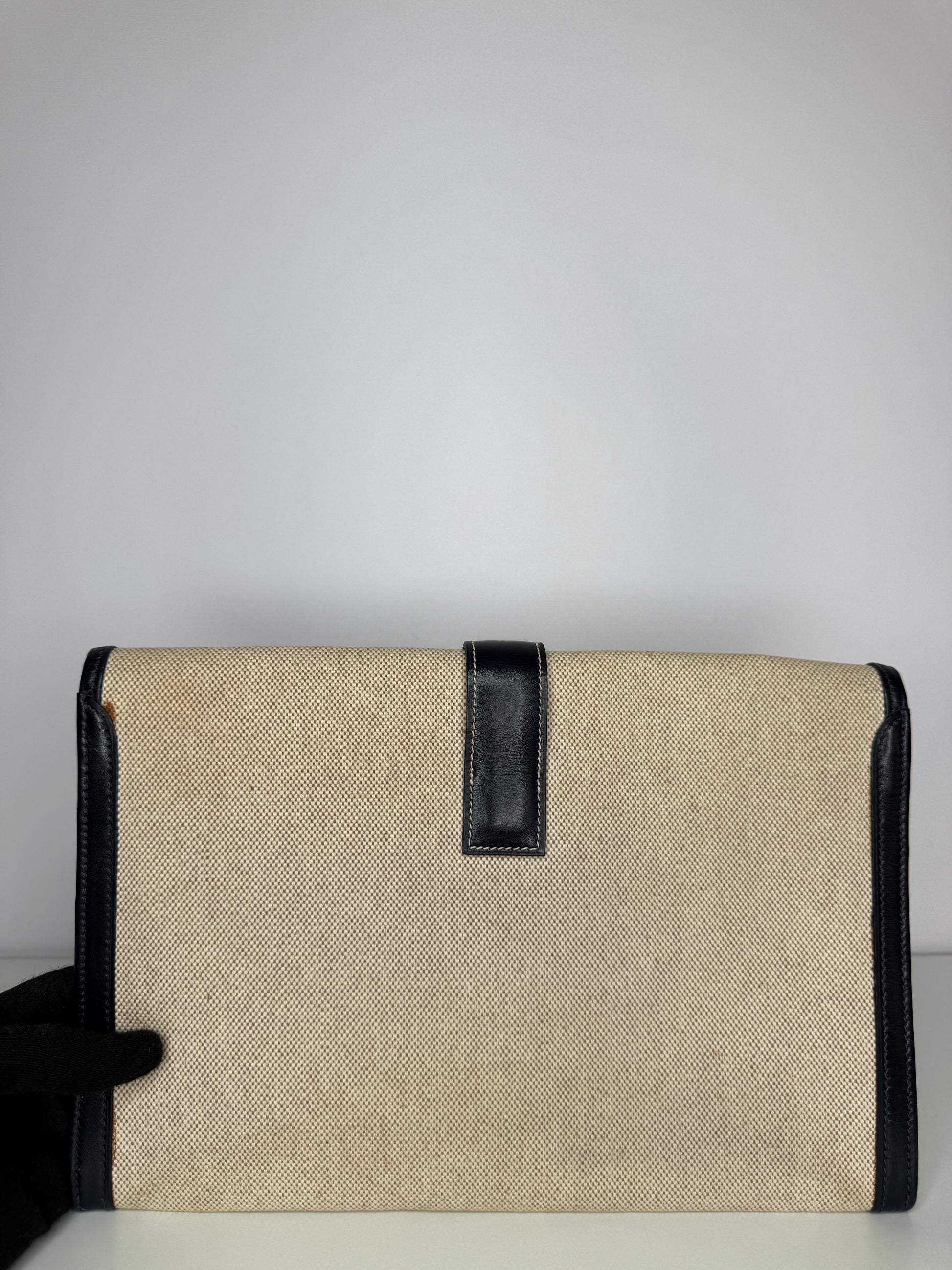 Hermès Box/Bleu Marine Toile H Canvas/Leather Elan 29 Jige Clutch