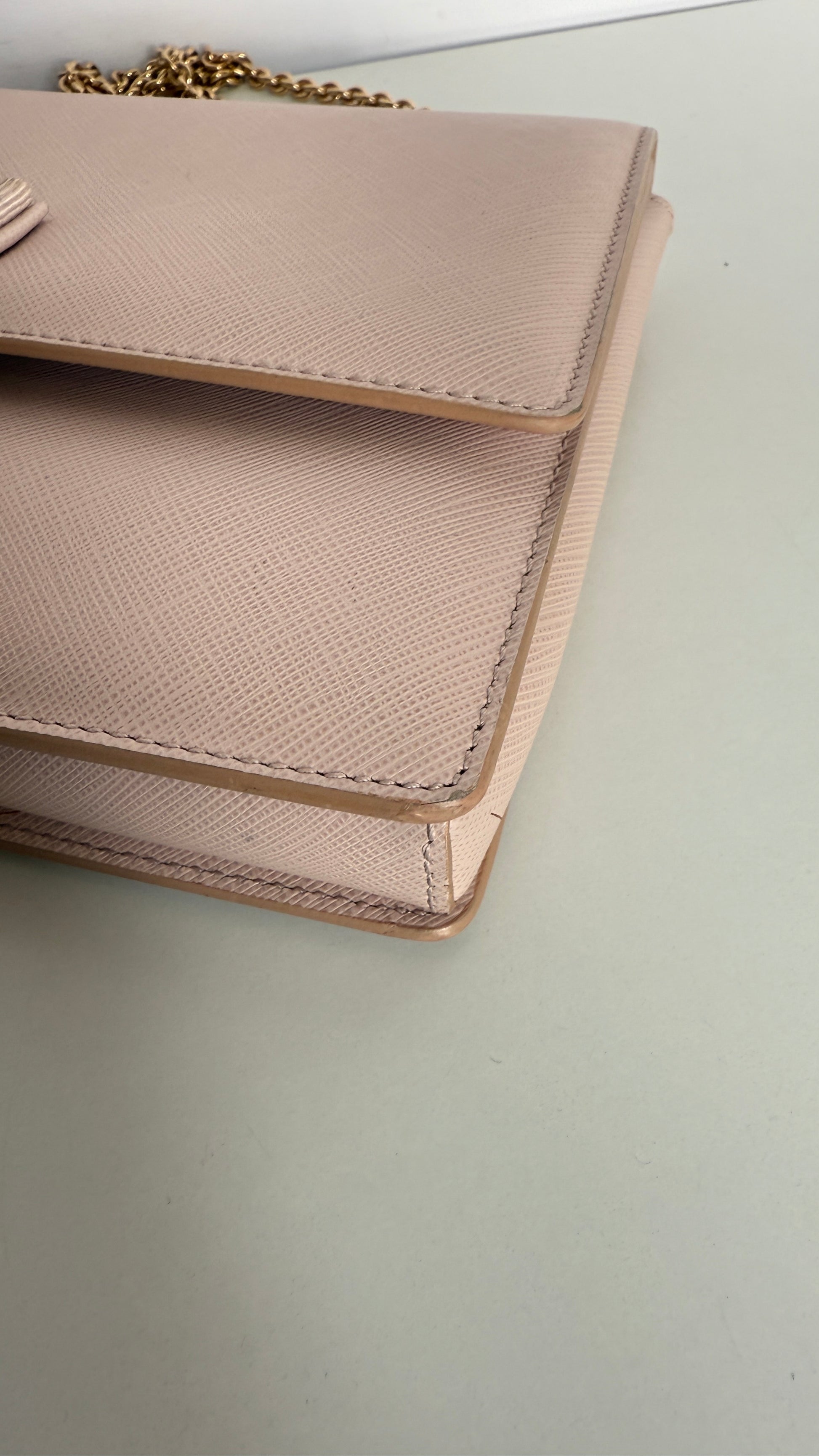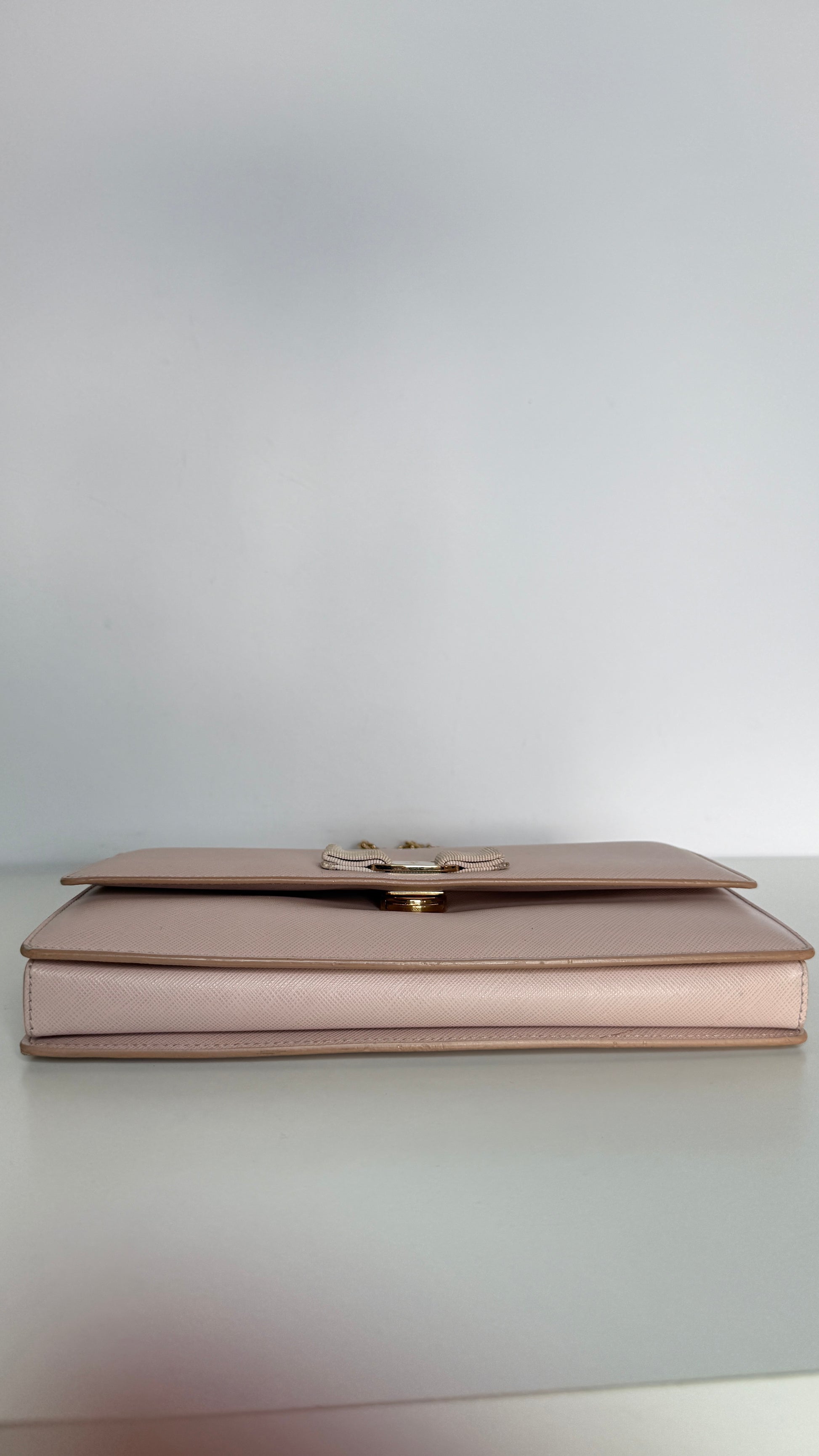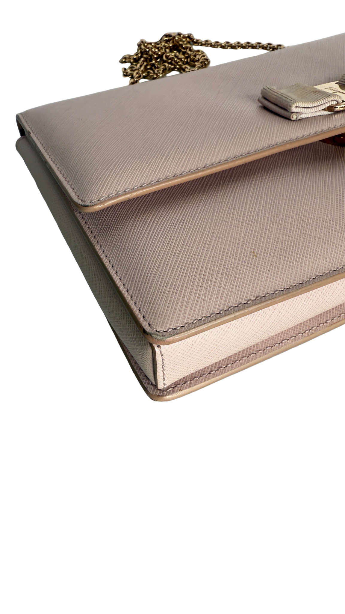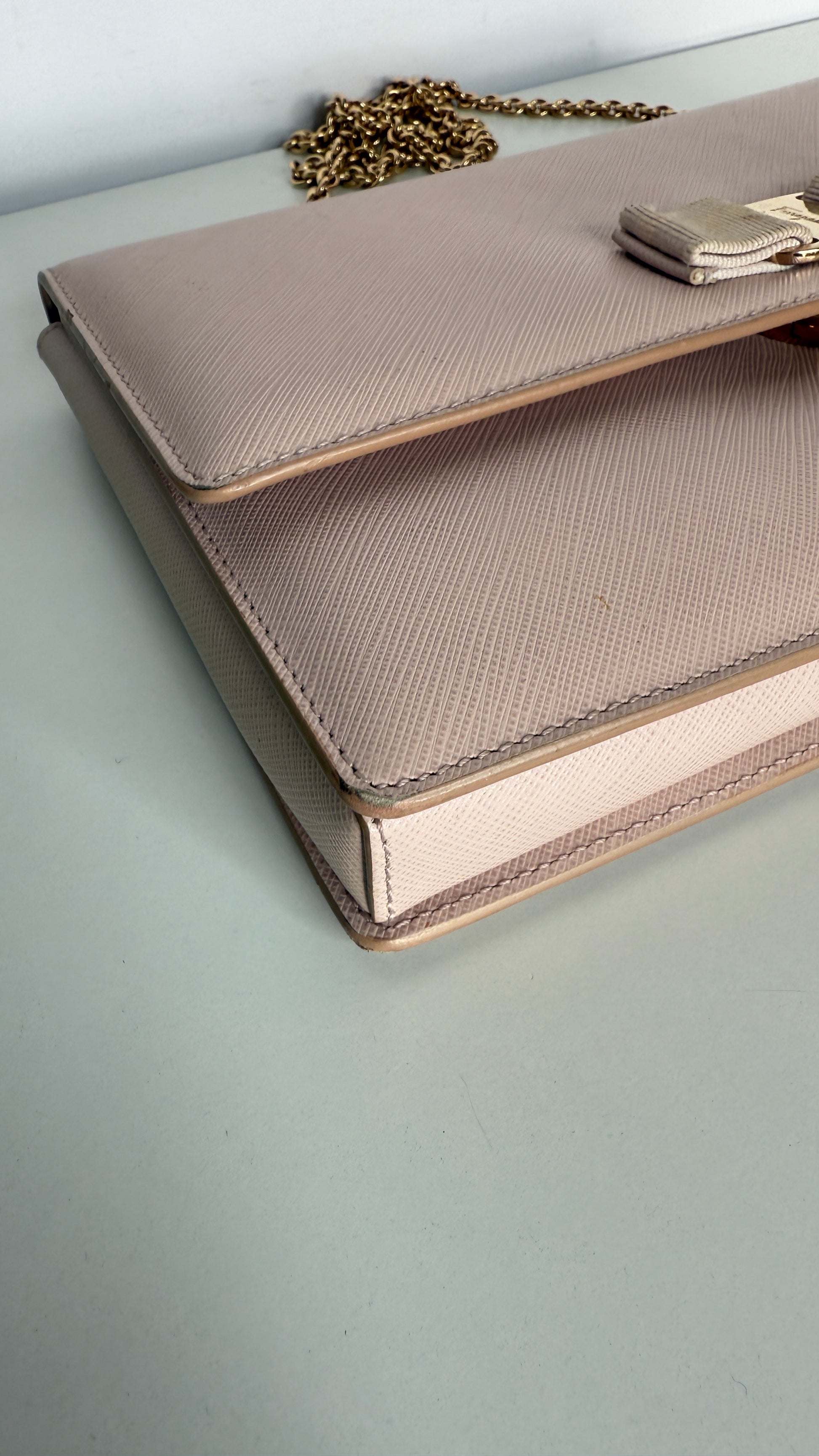 Salvatore Ferragamo Light Pink Leather Vara Bow Chain Shoulder Bag