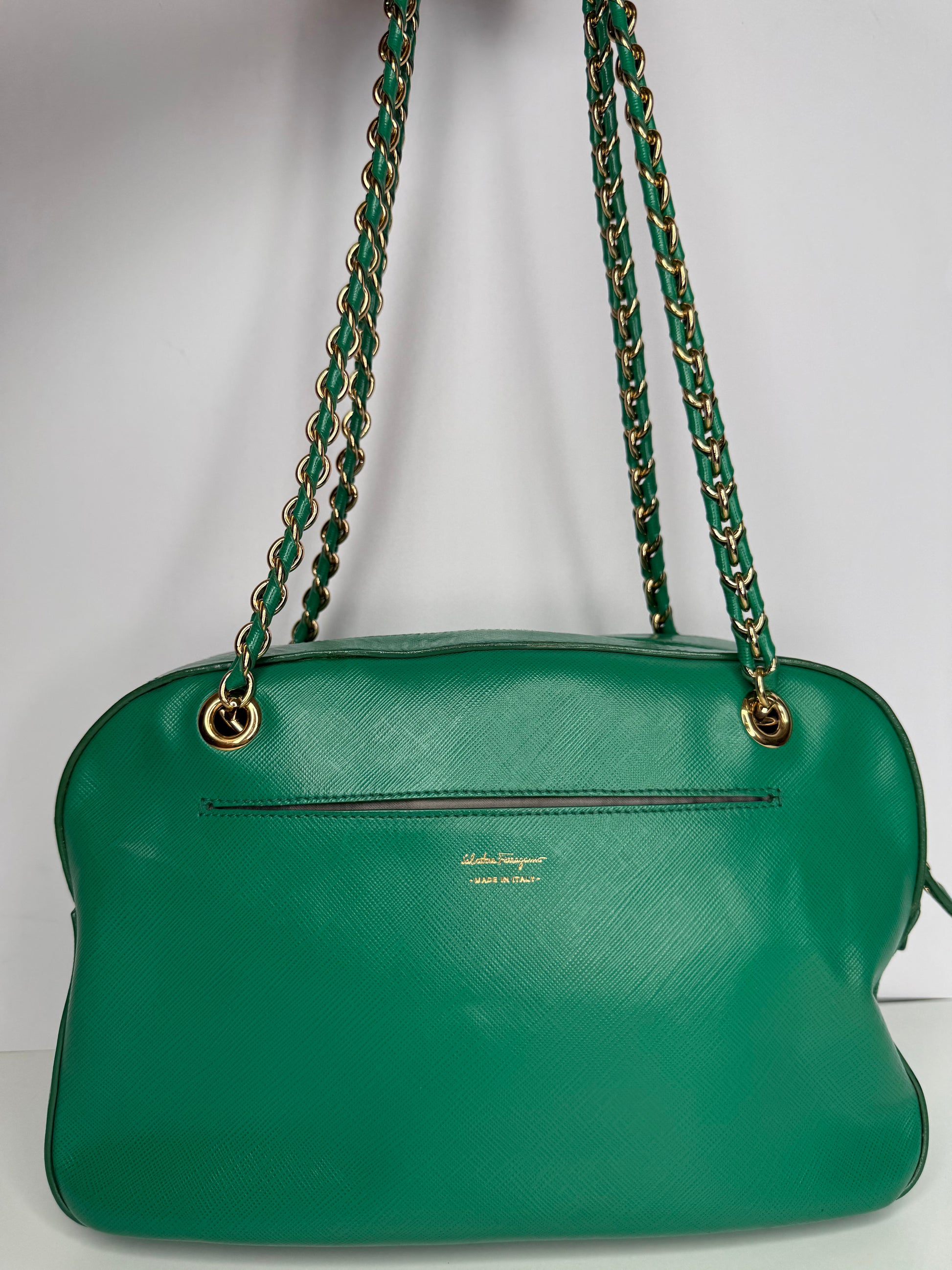 Salvatore Ferragamo Vara Bow Green Saffiano Leather Crossbody Bag