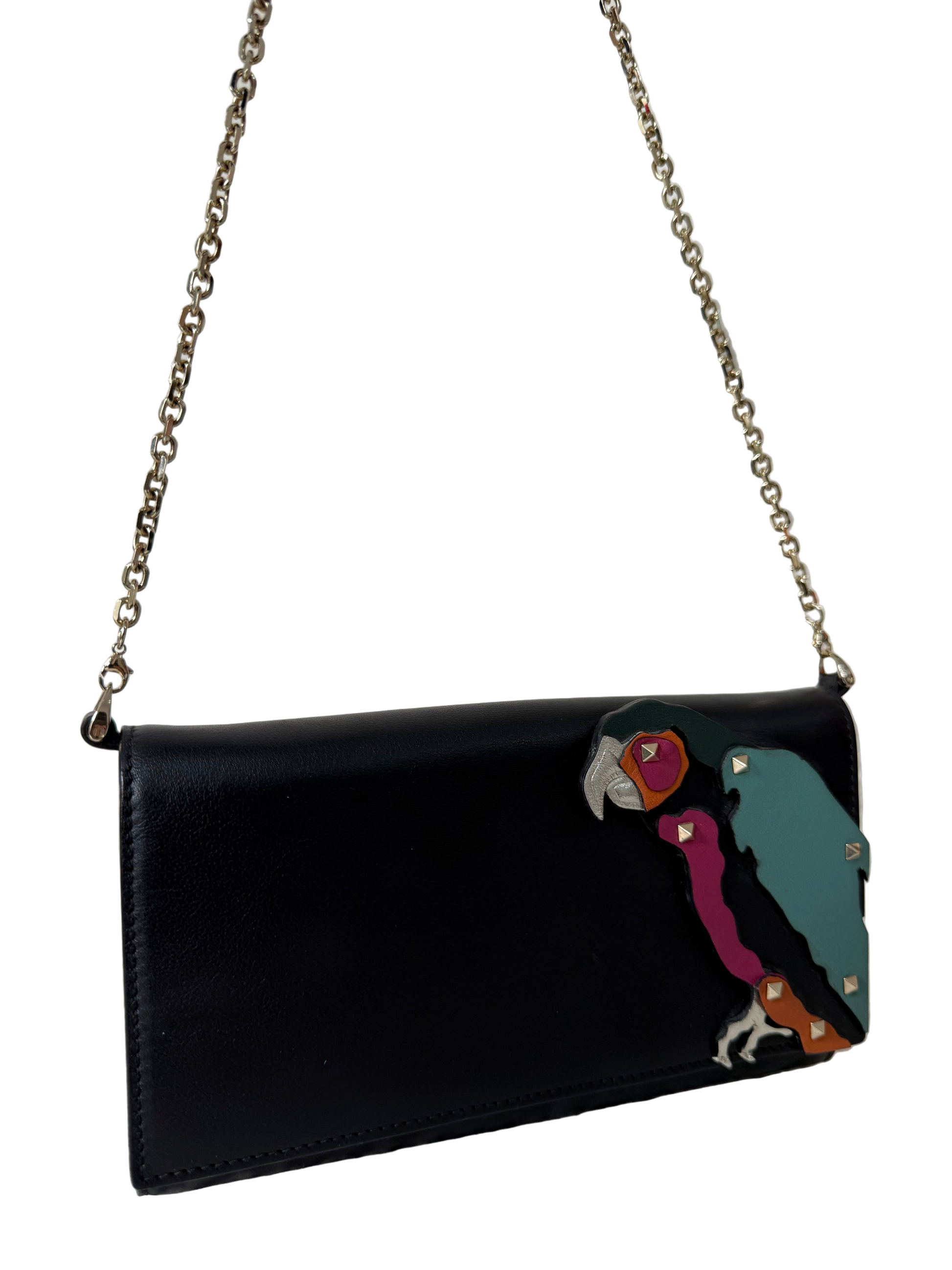 TEST Valentino Garavani Parrot Motif and Black Leather Wallet on Chain (Copy)