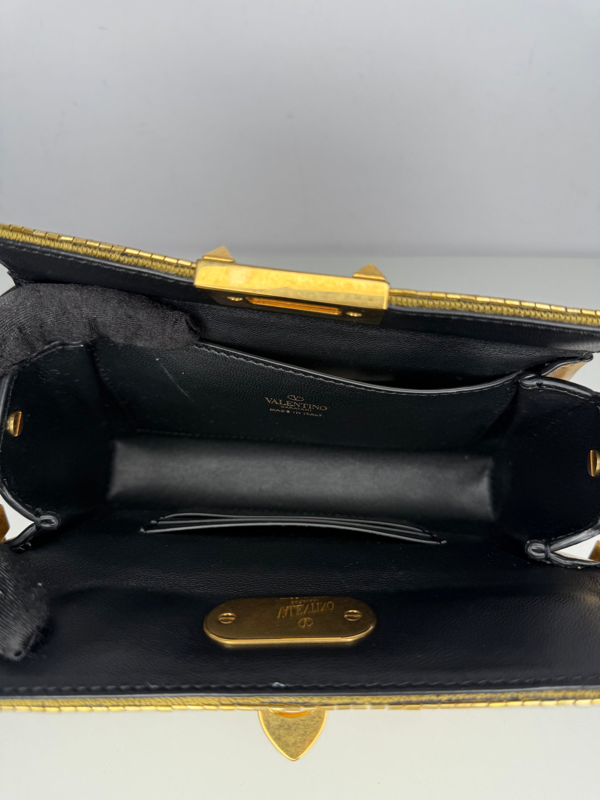 Valentino Garavani Carry Secrets Rockstud Chain Metallic Clutch