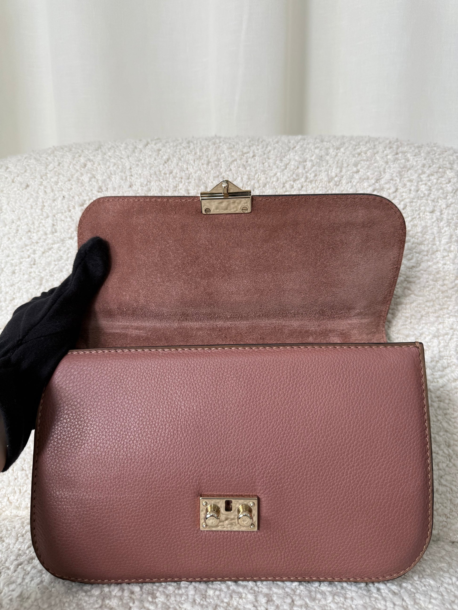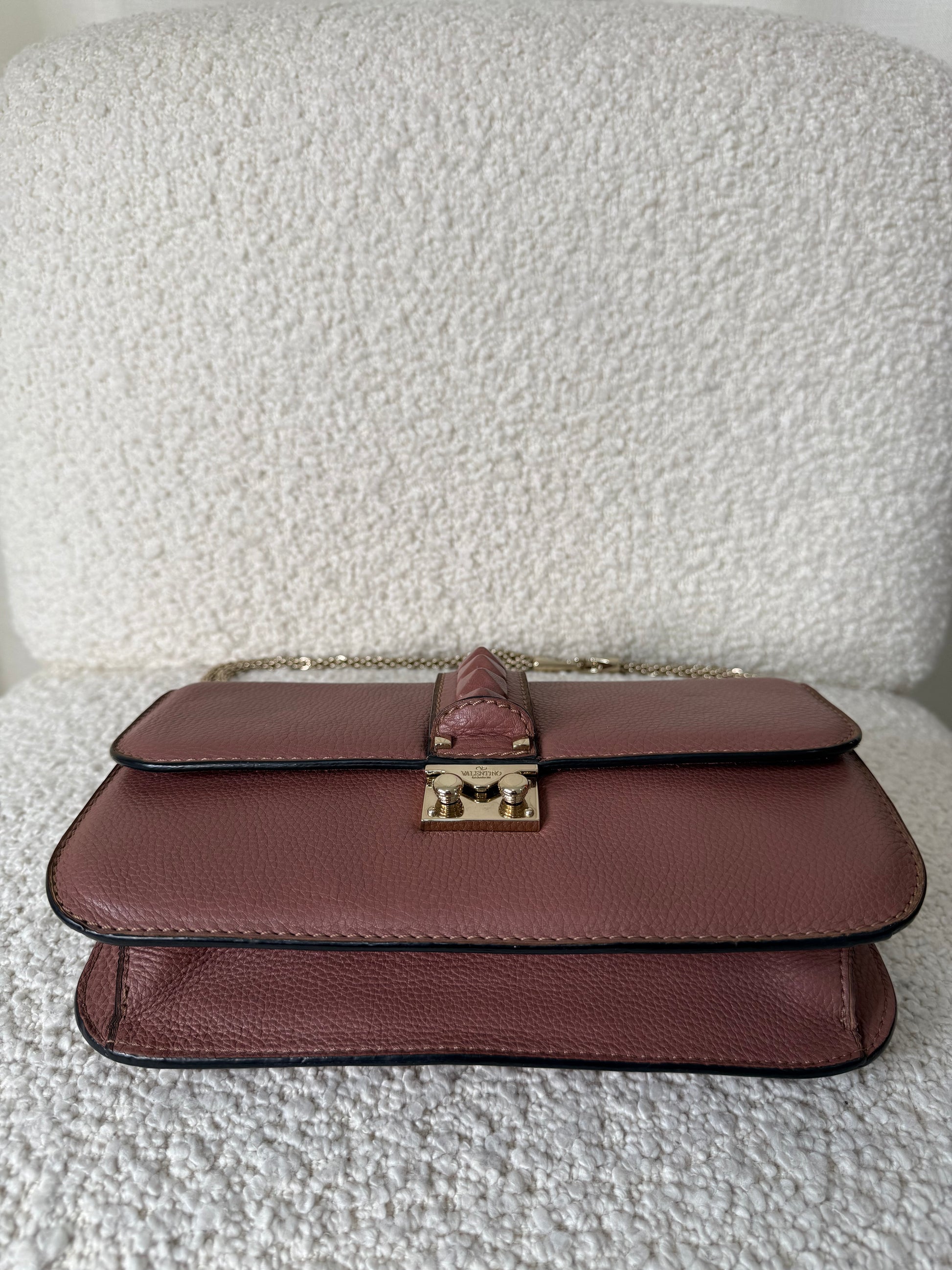 Valentino Garavani Old Rose Leather Rockstud Glam Lock Medium Flap Bag