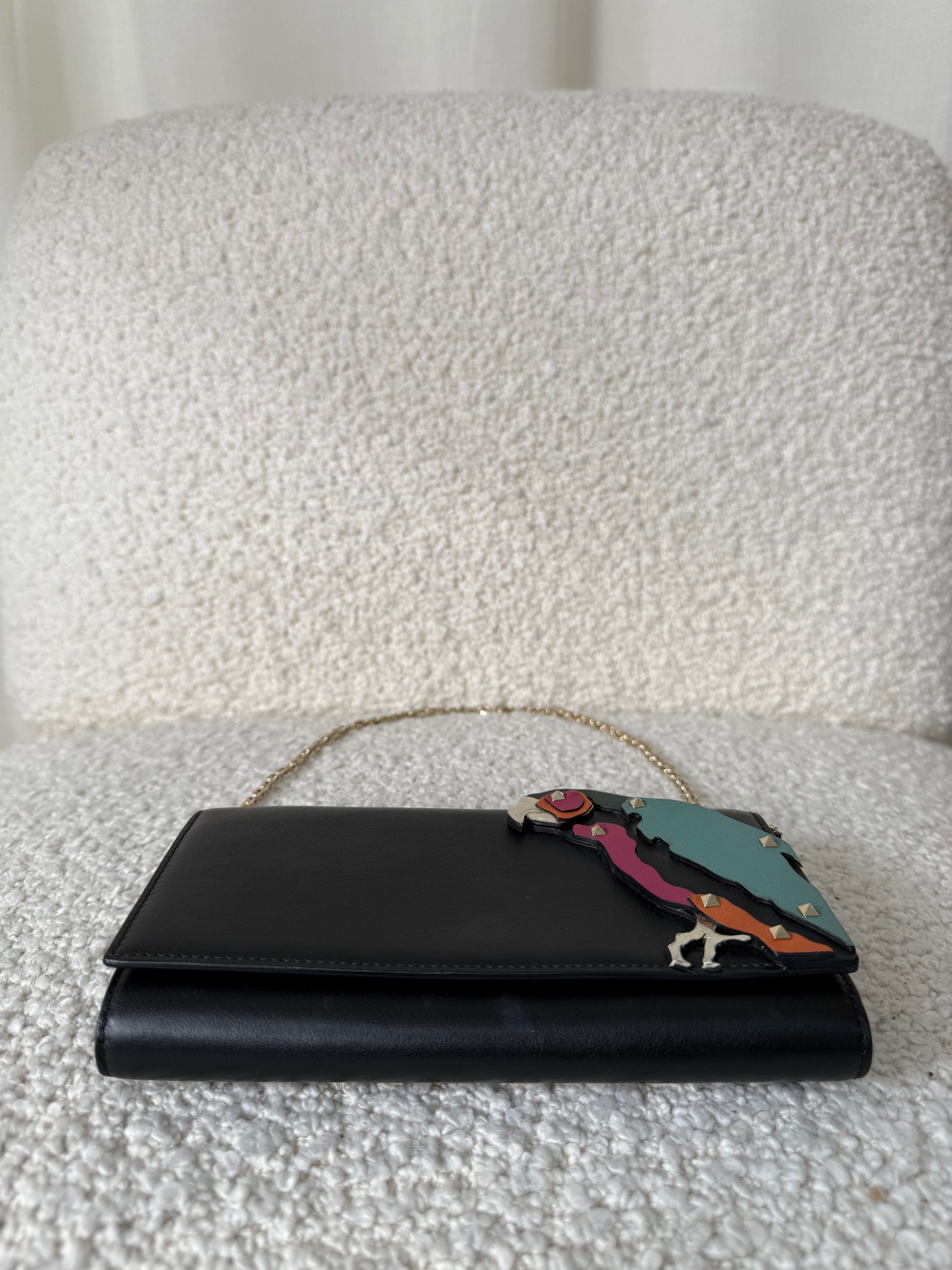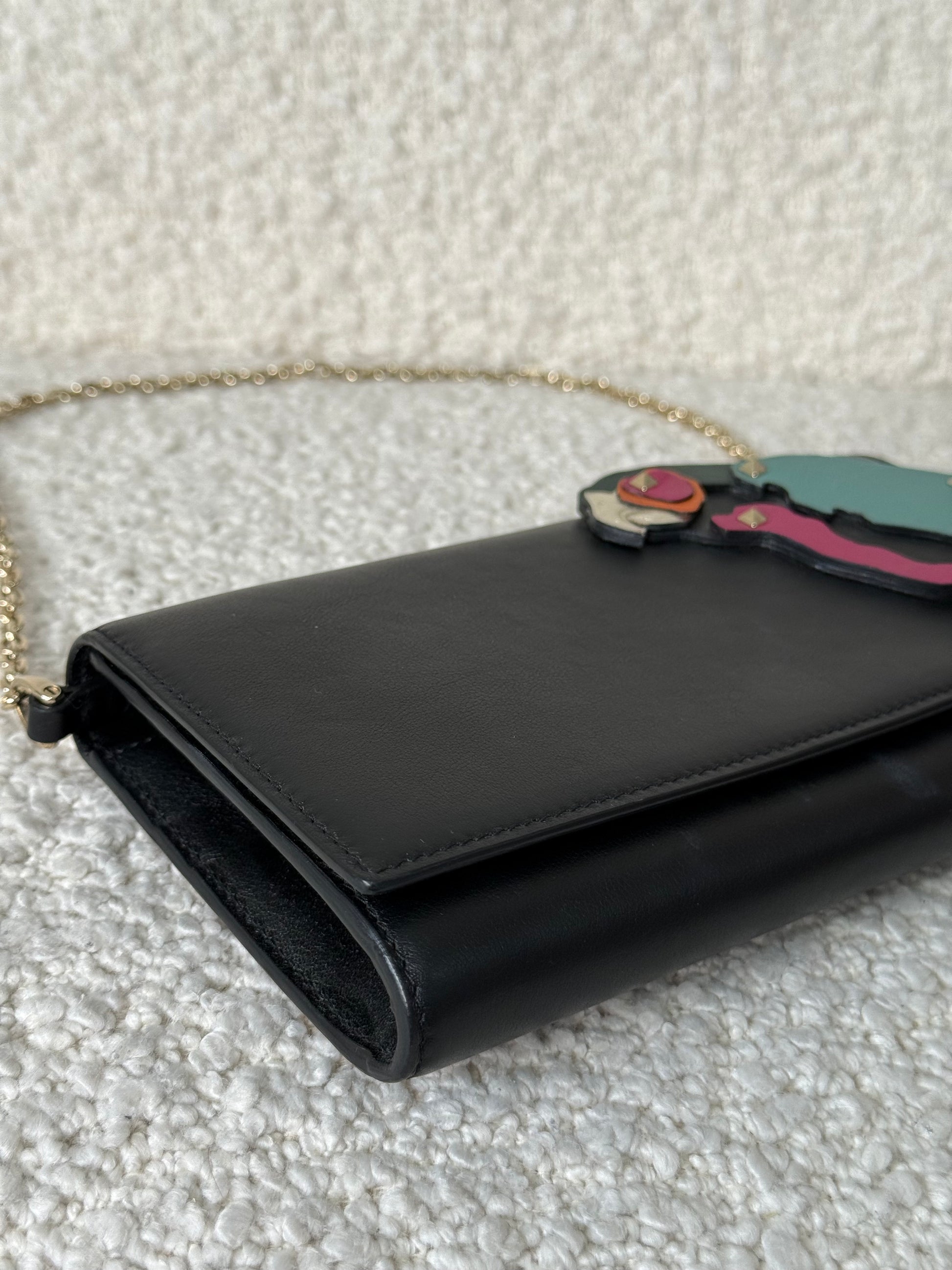 Valentino Garavani Parrot Motif and Black Leather Wallet on Chain