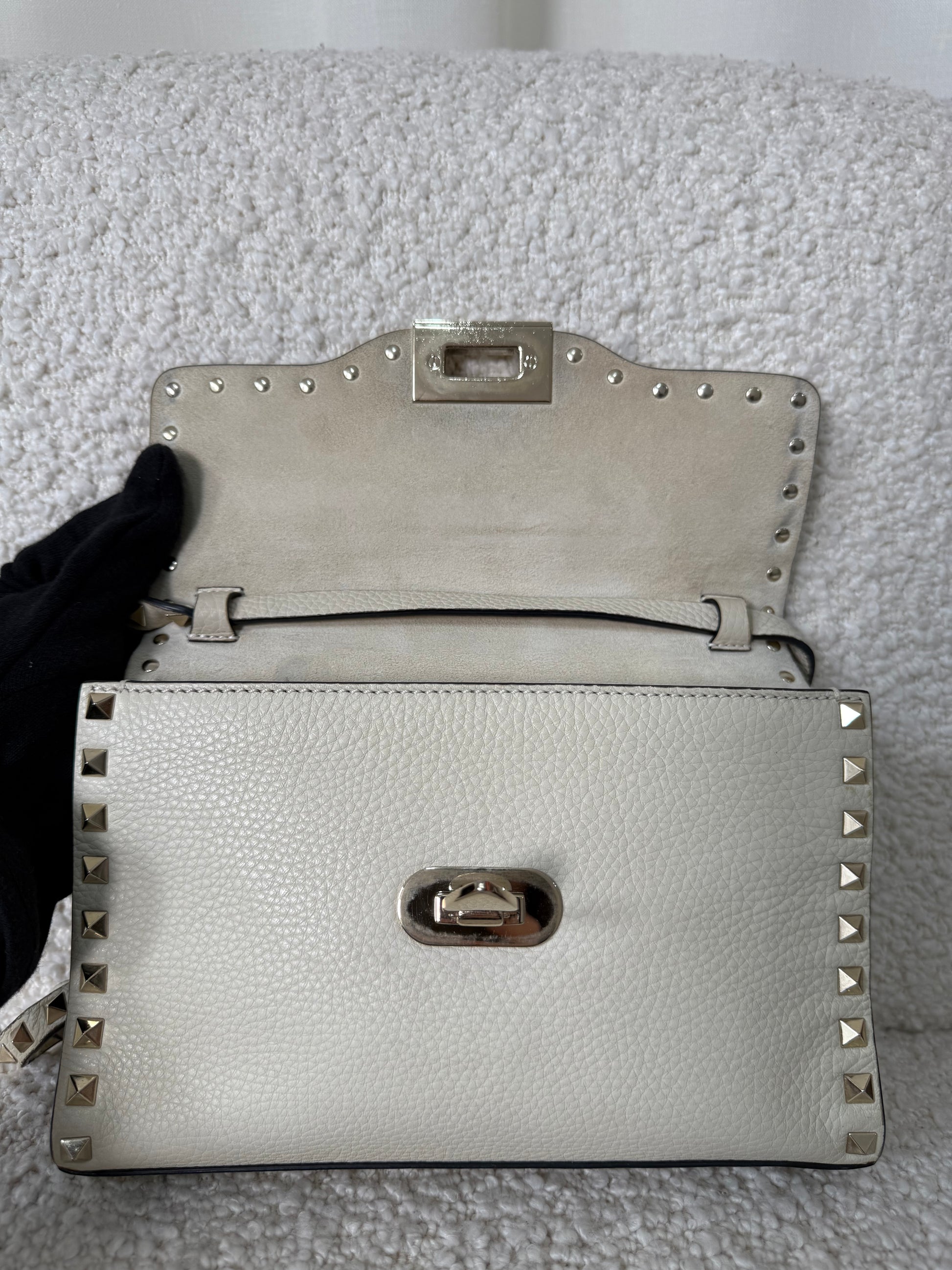 Valentino Garavani Small Rockstud Grainy Calfskin Crossbody Bag Ivory